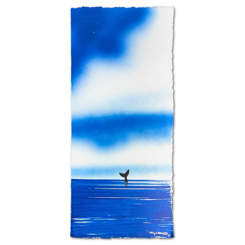 "Fluke" is an original painting acrylic on deckle edge paper by Wyland. Hand signed by the artist, the piece comes custom framed and with a letter of authenticity. Measures approximately 26.5" x 14.5" (framed), 22.5" x 10.5" (image). This item requires special handling and may have a longer than usual turnaround