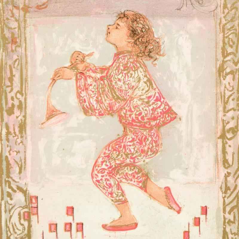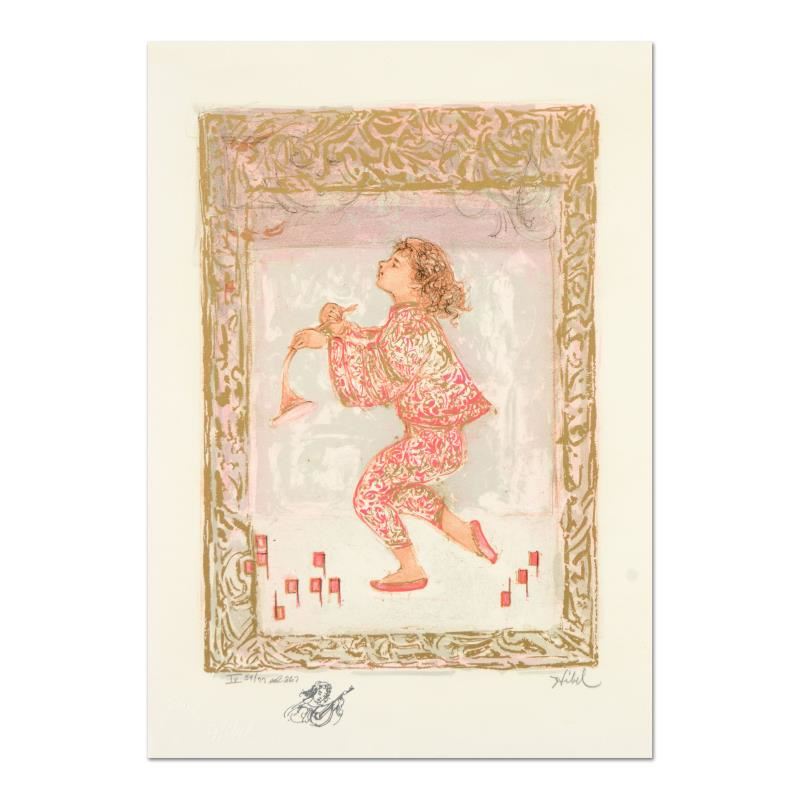 "Footnotes for a Symphony" is a limited edition lithograph on paper with remarque by Edna Hibel (1917-2014), numbered and hand signed by the artist. Includes Certificate of Authenticity. Measures approx. 13" x 18.5" (border), 10" x 14.5" (image).
