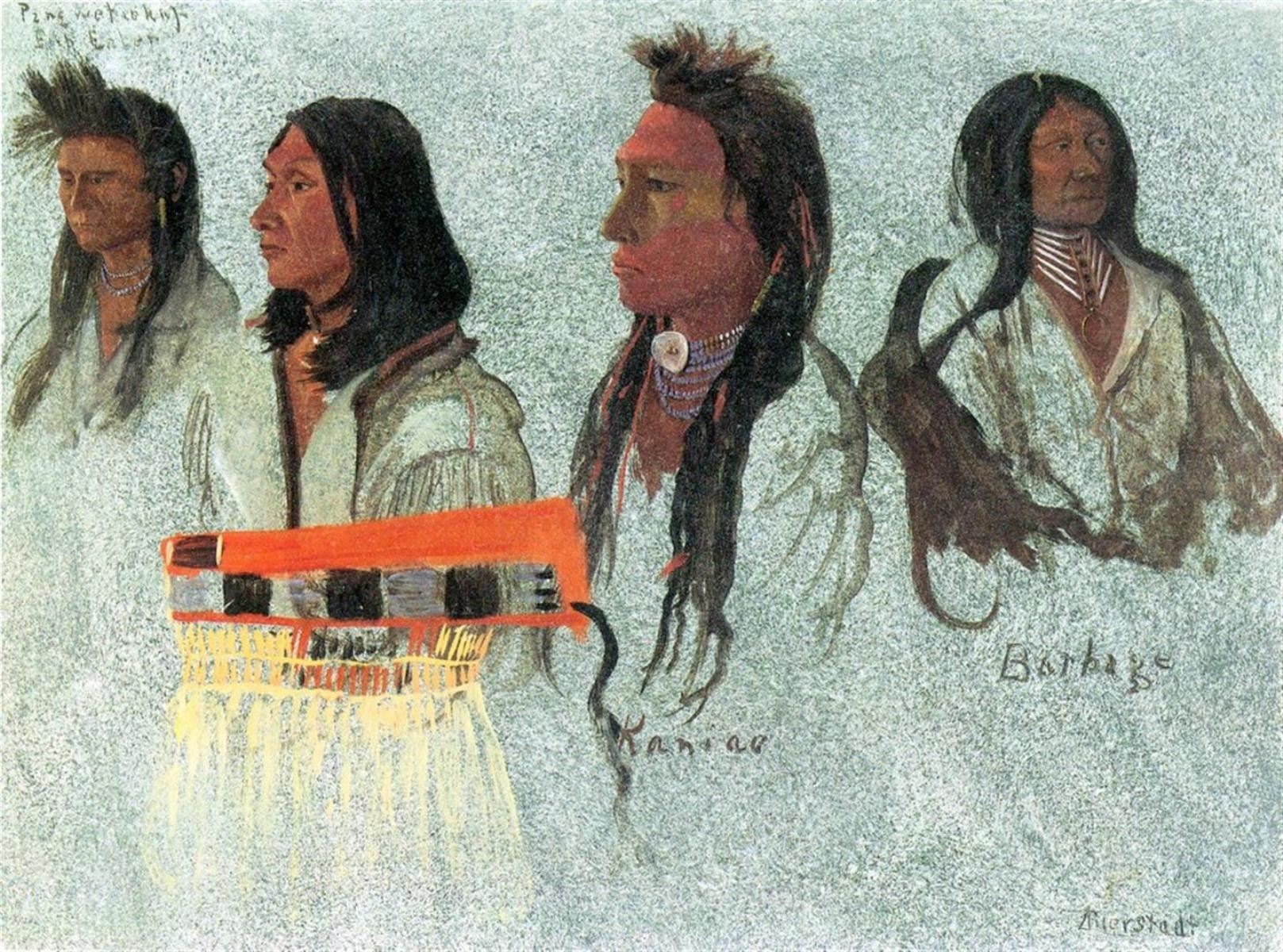 Artist: Albert Bierstadt - Title: Four Indians - Medium: Fine Art Giclee on Canvas - Image Size: Approximately 14.75 inches x 20 inches - Unframed on Unstretched Canvas - Biography: Bierstadt became internationally renowned for his beautiful and enormous paintings of the newly accessible American west, and his works found their way into public and private collections at staggeringly high prices for his time. His popularity and wealth rose to tremendous heights only to fade as the interest in the Boston School and impressionism turned public taste away from his highly detailed landscapes suffused with golden light. -