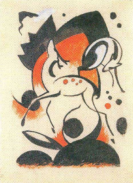 Artist: Franz Marc - Title: Composition with Two Deer - Medium: Fine Art Reproduction Giclee on Canvas - Image Size: Approximately 20 inches x 14.5 inches - Unframed on Unstretched Canvas - Biography: Franz Moritz Wilhelm Marc (8 February 1880 - 4 March 1916) was a German painter and printmaker, one of the key figures of German Expressionism. He was a founding member of Der Blaue Reiter (The Blue Rider), a journal whose name later became synonymous with the circle of artists collaborating in it. - His mature works mostly depict animals, and are known for bright colouration. He was drafted to serve in the German Army at the beginning of World War I, and died two years later at the Battle of Verdun.