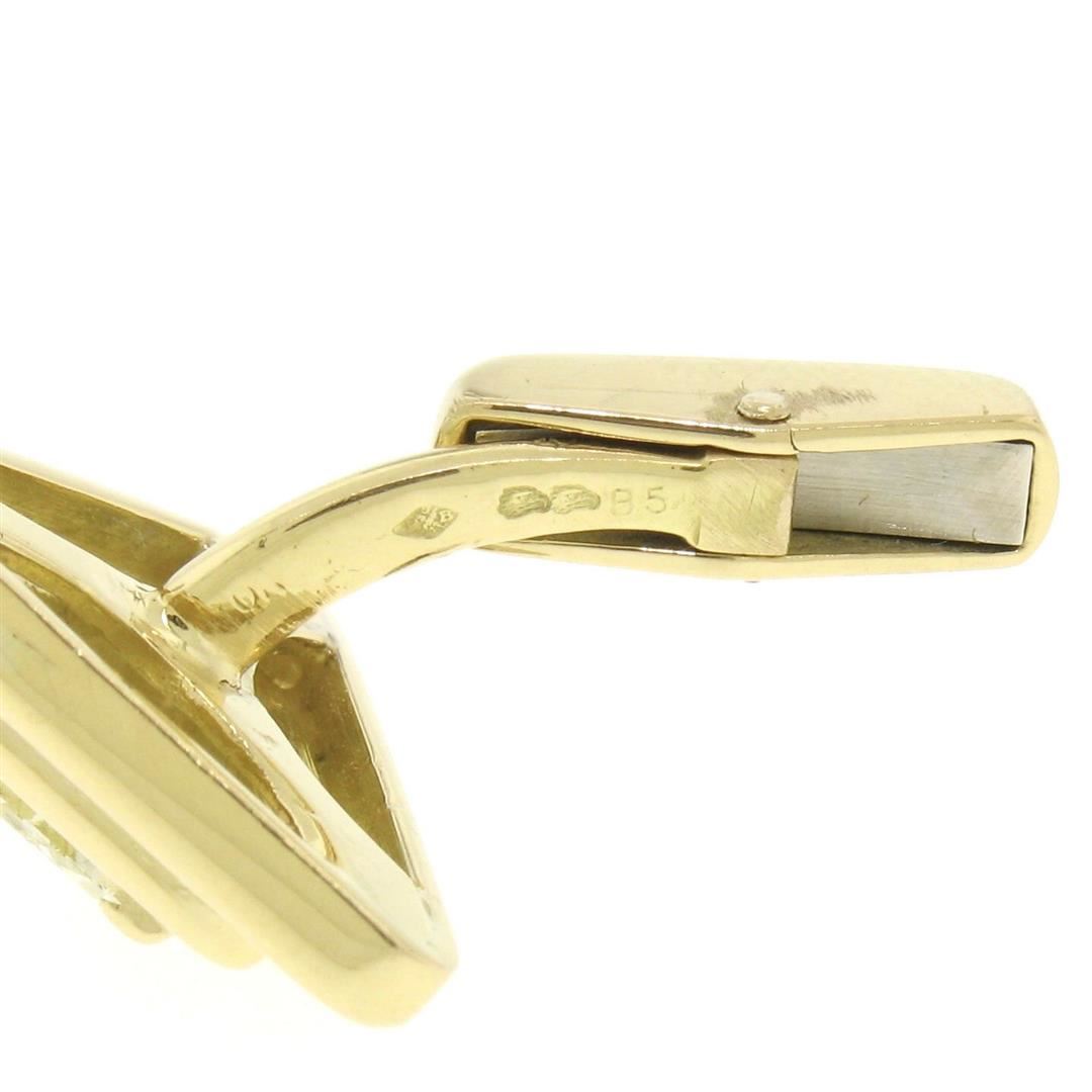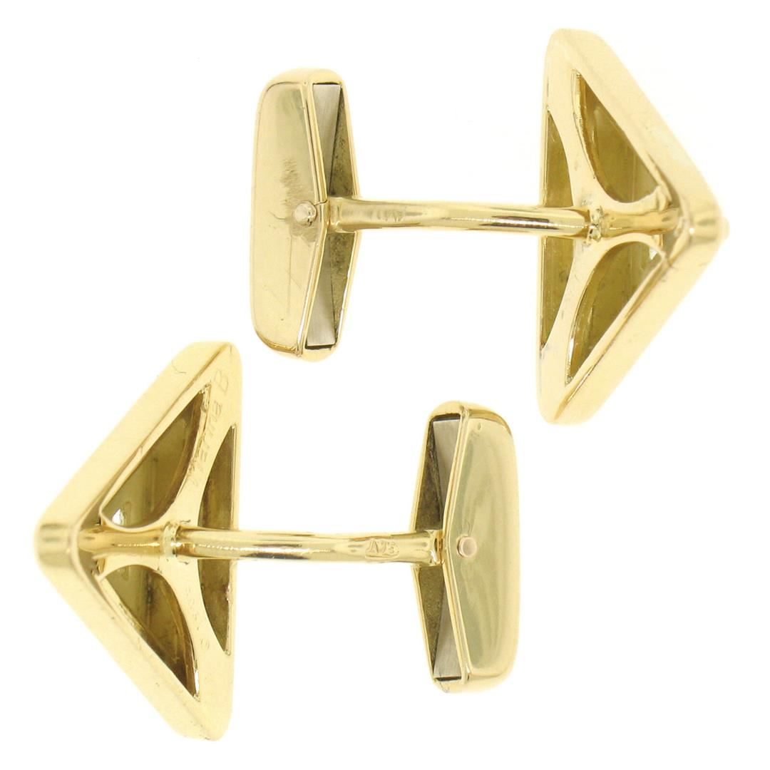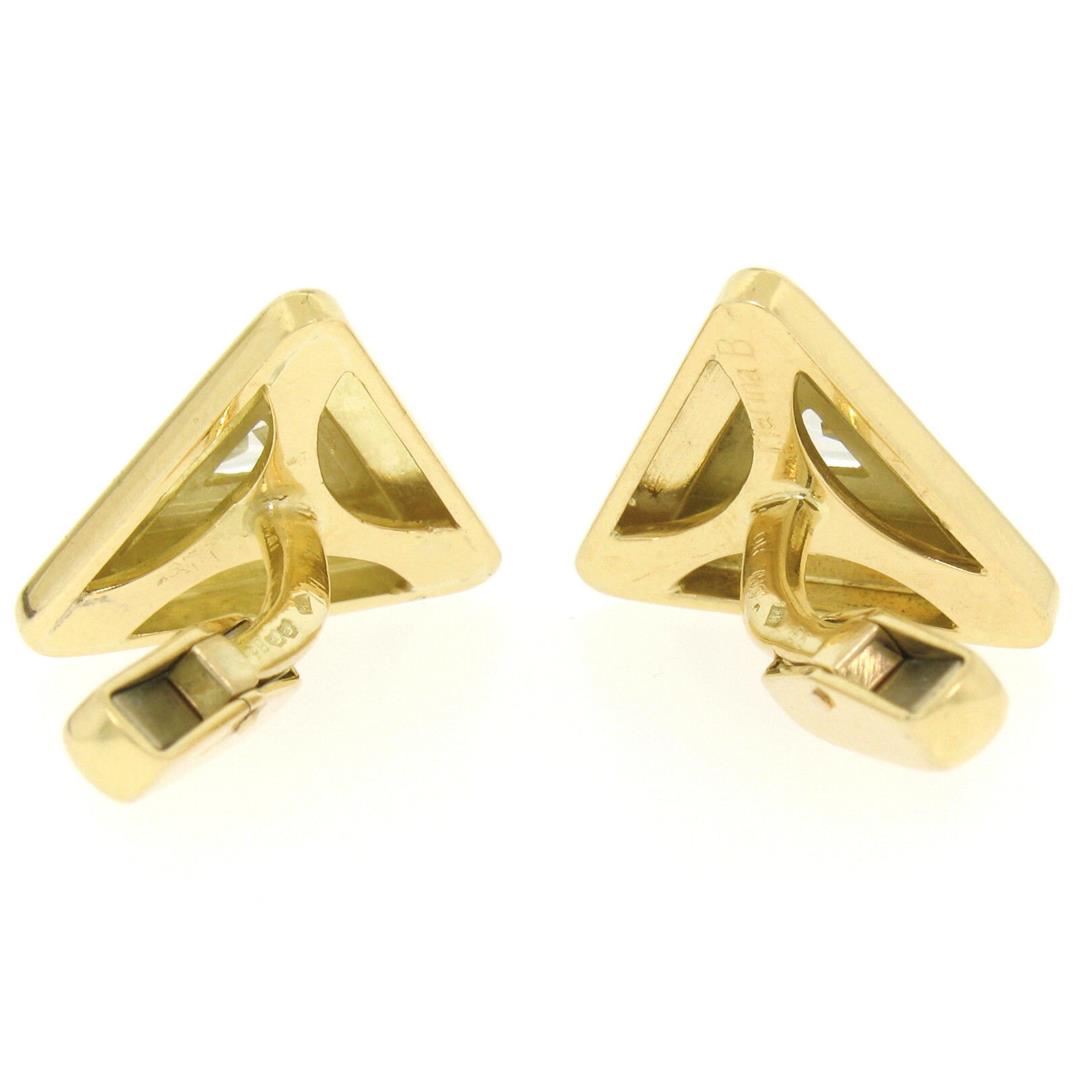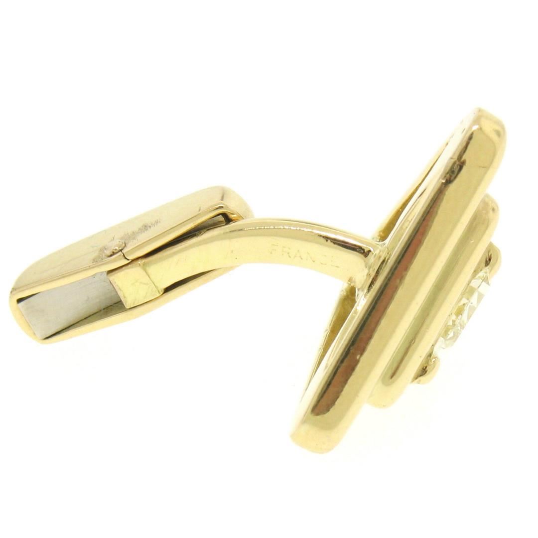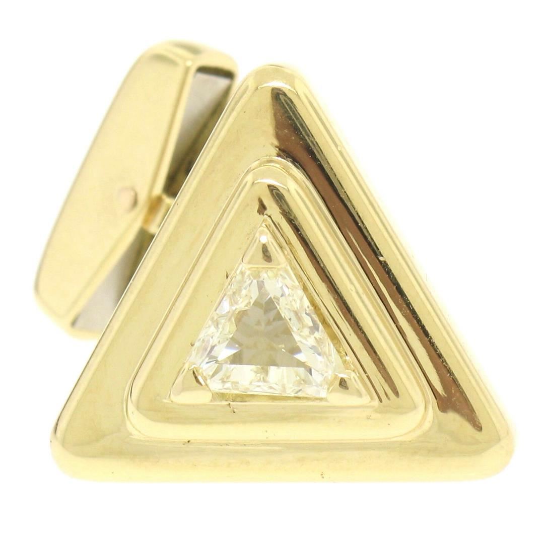 One Marina B French 18k Solid Yellow Gold 1.20ctw FANCY Light Yellow Trillion Cut Diamond Cuff Links. Item Details: Material: 18k Solid Yellow Gold, Total Weight:15.0 Grams, Stones:(2) Natural Genuine Diamonds - Trillion Cut - Prong Set - FANCY Light Yellow Color - VS2 Clarity - 1.20ctw (approx.), Overall Height: 25.32mm, Overall Width: 19.0mm, Backing: Swivel Backs, Cuff Clearance: 12.4mm, Signature(s): France Condition: Estate - Excellent condition!