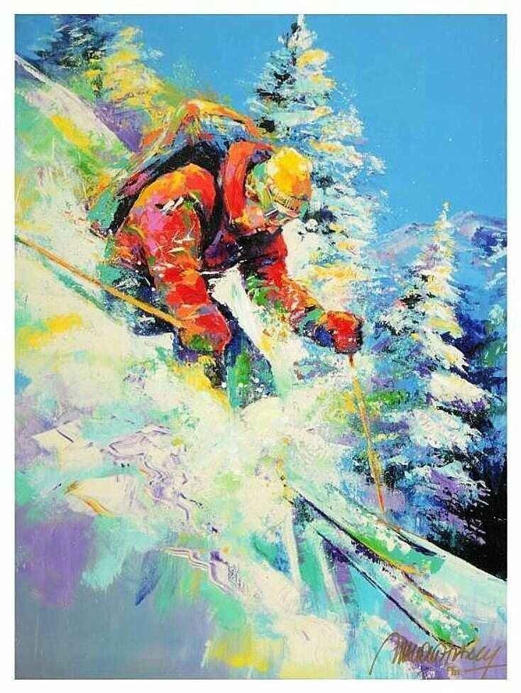 Fresh Powder by Farley, Malcolm. Limited Hand Signed Giclee on canvas. Dimensions: 36 x 27. Excellent Condition.