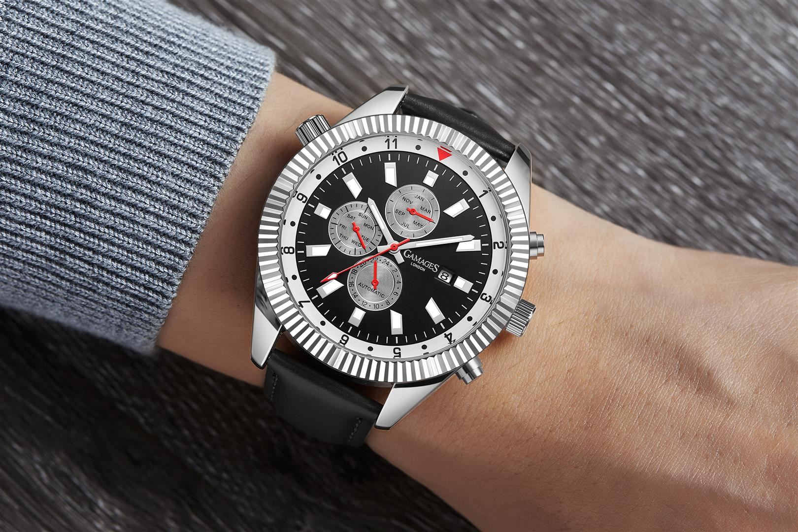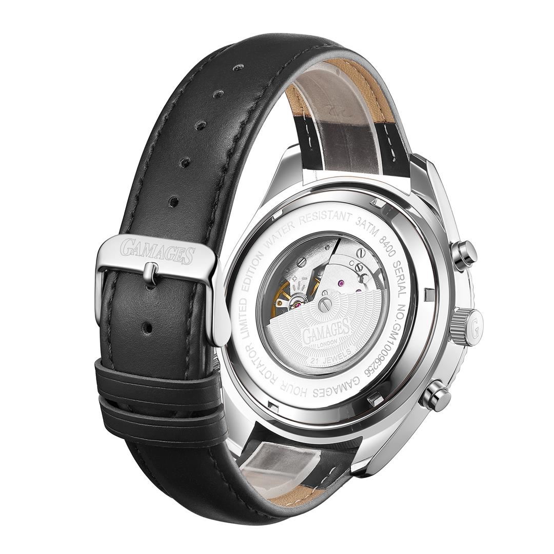 Whether gold, coal, or iron ore, mining will forever have a place in British history. The Gamages Hour Rotator men's watch reminds us of such a tradition and promotes the affluence you can only find when you're willing to explore deep under the Earth's surface. It consists of a 163 part 20 jewel hand assembled movement that is inspired by the intricate solutions required for every venture beneath. Bordered by an inner-rotating bezel, the Day, Date, Month and 24-Hour functions conjure images of the neverending grit that makes the man, while the blade-like hands push scenes of determination to the forefront of your mind. These parts are contained within the solid stainless steel caseback with the Gamages logo engraved. The first layer hand waxed soot black leather strap, complete with Gamages logo buckle, leaves a final lasting impression. With the history of mining, it is understood that the work never stopped, and while the nation doesn't rely on it as it once did, this watch reminds us of the consistent work that went into building Britain. Model Specifications - Hand Assembled 163 Piece 20 Jewel Automatic Movement - Stainless Steel Case Back With Gamages Etched Logo - Day, Date & Month Functions - 24 Hour Timer - Luminous Hands - Inner Rotating Hour Bezel - Scratch Resistant Mineral Glass - Water Resistant 3ATM - Hand Waxed Tobacco Brown Leather Strap - Shock Resistant - Antimagnetic - Nickel Free & Hypoallergenic - IP Plating Watch Dimensions - Case 48mm - Thickness 14mm - Strap Width 22mm - Strap Length 220mm - Lug Width 22mm - Weight 94g