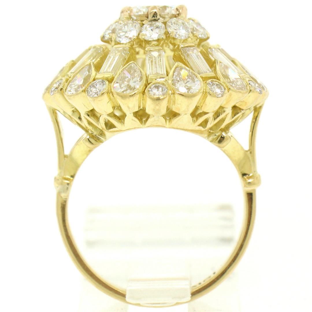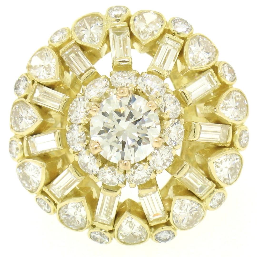 One GIA Cert 18K Yellow Gold 5.56ctw Round & Baguette Diamond Waterfall Cluster Ring. Item Details: Material: 18k Solid Yellow Gold, Weight: 9.70 Grams, Stone(s): (1) Natural Genuine Diamond - Prong Set - *See Certification Details Below*, (11) Natural Genuine Diamonds - Baguette Cut - Bar Set - G/H Color - VS1/VS2 Clarity - 1.54ctw (approx.), (11) Natural Genuine Diamonds - Pear Cut - Bezel Set - G/H Color - VS1/VS2 Clarity - 1.98ctw (approx.), (22) Natural Genuine Diamonds - Round Brilliant Cut - Bezel and Prong Set - G/H Color - VS1/VS2 - 1.20ctw (approx.), Total Carat Weight: 5.56ctw (approx.), Ring Size: 6.50 One Ring Width: 22.0mm in diameter. Ring Height: 11.60mm rise off the finger: Condition: Excellent condition! GIA certified center stone w/ certification., Certification Details, Laboratory: GIA, Report Number: 5161773975, Stone Type: Diamond, Stone Shape: Round Brilliant, Carat Weight: 0.84, Dimensions: 6.21 x 6.31 x 3.64 mm Color: G Clarity: SI1 Cut Grade: Very Good Fluorescence: NONE