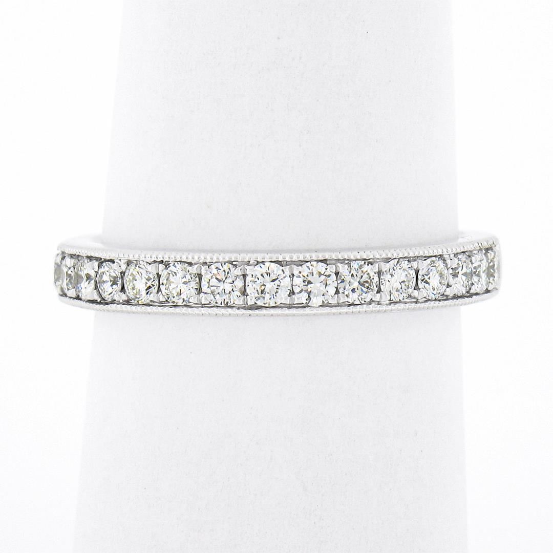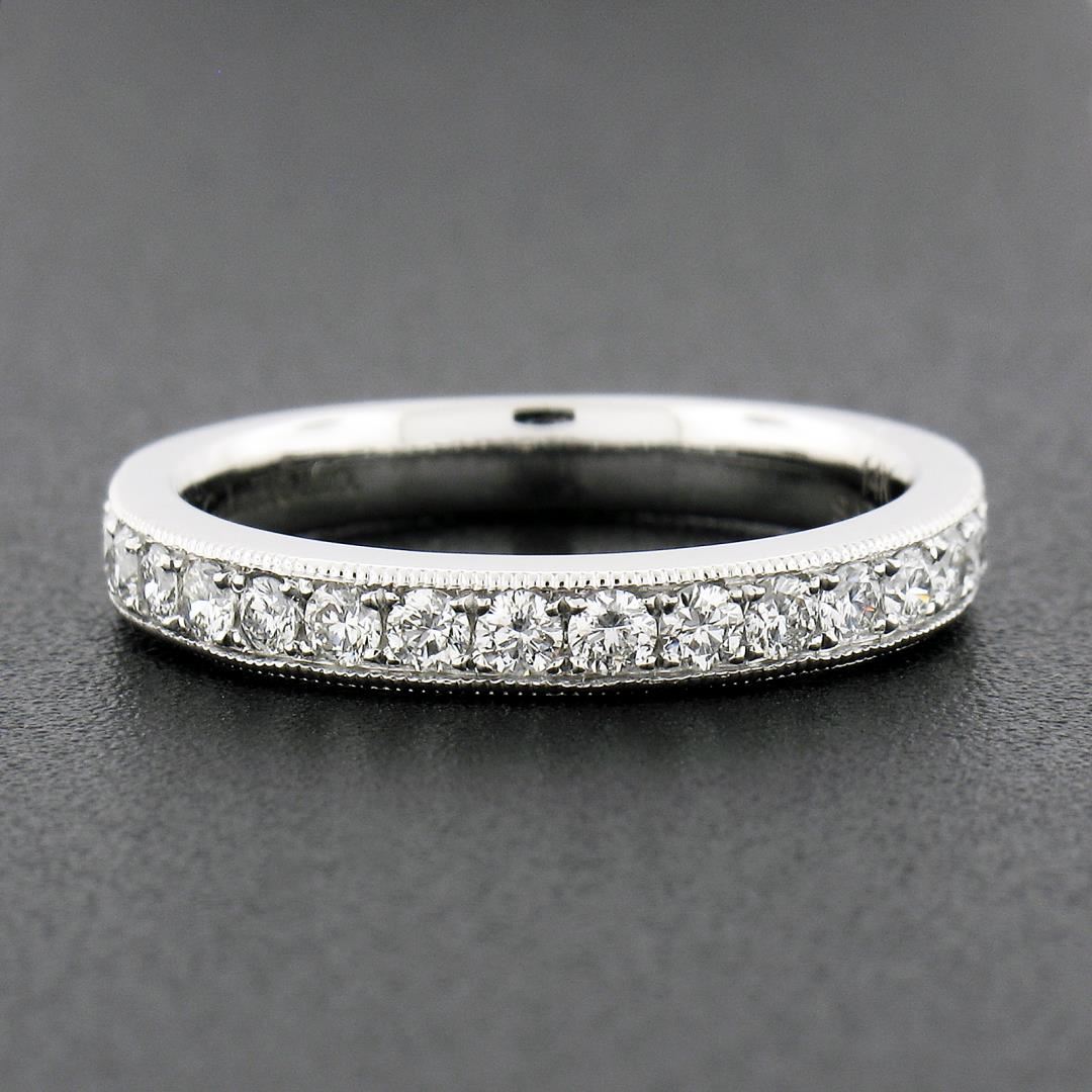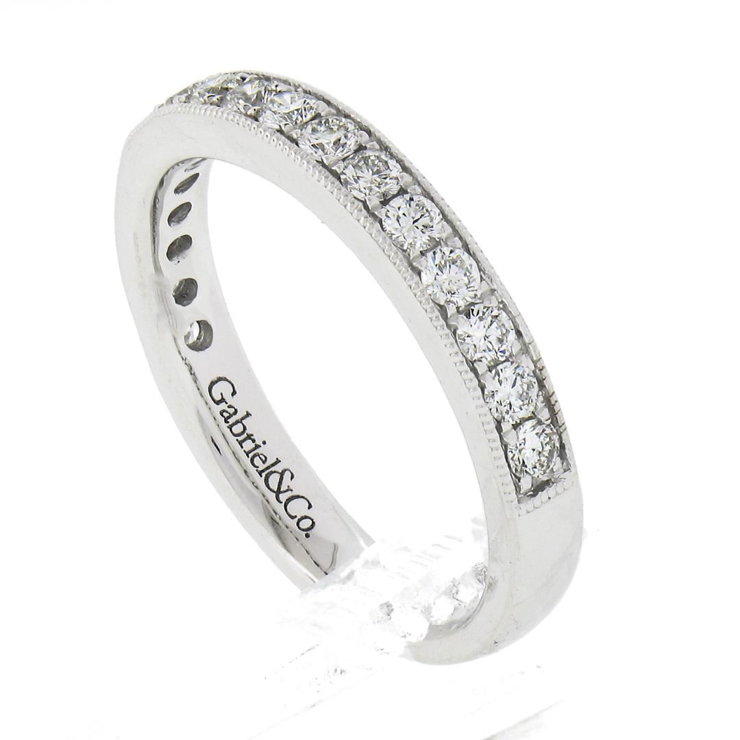 A new solid 14k white gold band ring by Gabriel & Co. with 17 round cut natural diamonds (F/G - VS1/VS2 ; 0.50ctw). The ring is size 6.5, weighs a total of 3.30 grams, and measures 3mm wide.