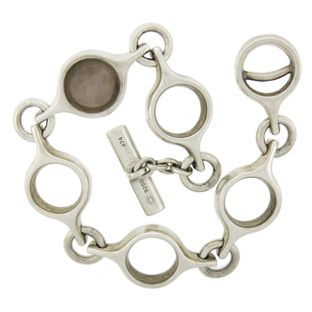 Georg Jensen Silver Open Round Link Chain 474 Bracelet w/ Toggle Clasp & Quartz