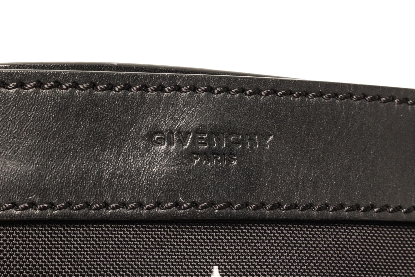 Givenchy Black Nylon Nightingale Monkey Brothers Satchel Bag. All available information is listed in the description and shown in the photos. givenchy black nylon nightingale monkey brothers satchel bag with this satchel features a printed nylon body, a flat leather handle, a detachable flat leather strap, a top zip closure, and interior zip and slip pockets. Height: 18.1" Width: 15" Depth: 5.5, Handle Drop: 7.1" / 45.97 x 38.1 x 13.97 Cm