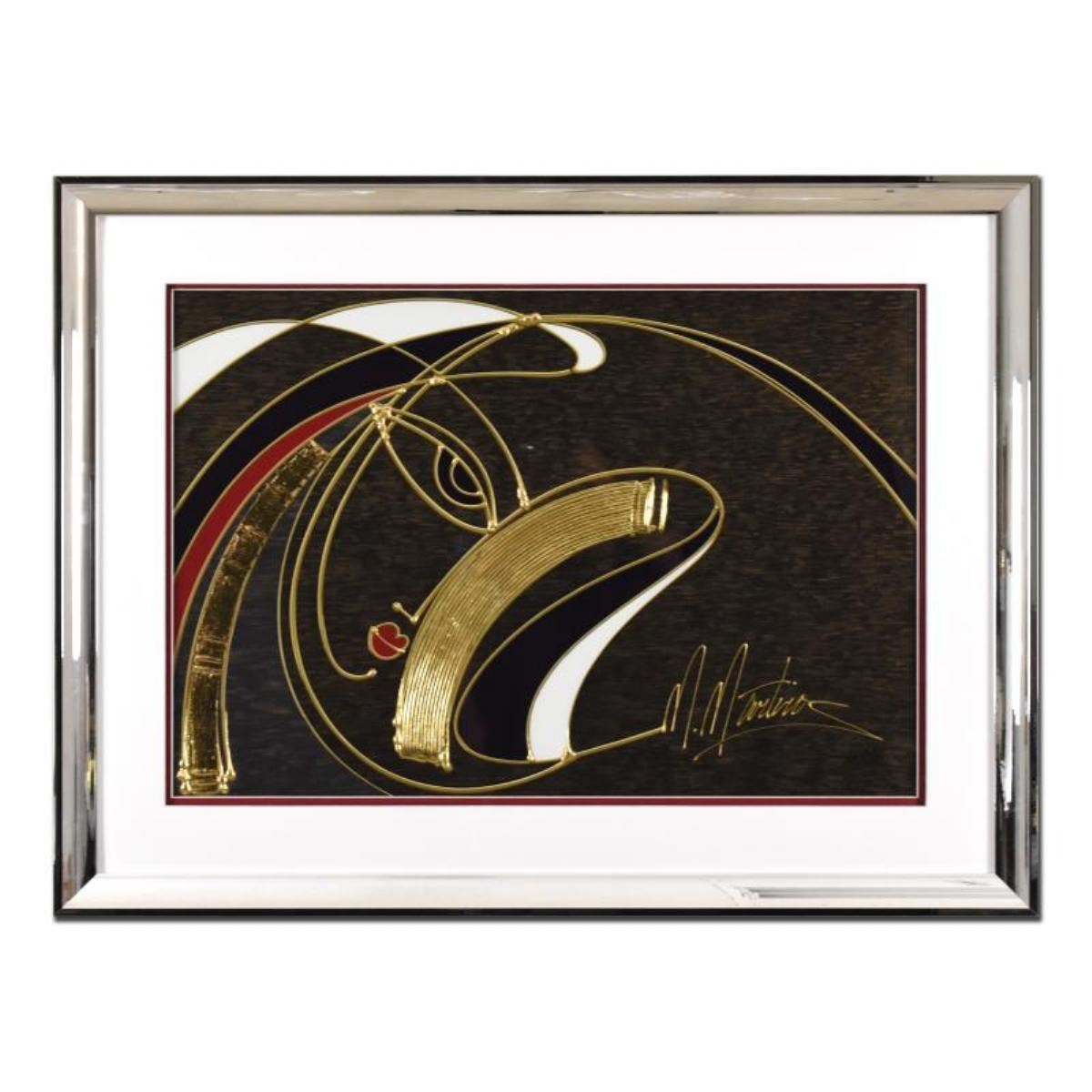 Golden Sorrow by Manoukian, Martiros. "Inspiration" is a limited edition mixed media silkscreen on paper by Martiros Manoukian, PP numbered 1/3 and hand signed by the artist. This piece comes custom framed. Includes Letter of Authenticity. Measures approx. 37.5" x 31.5" (frame), 29" x 23.5" (image).