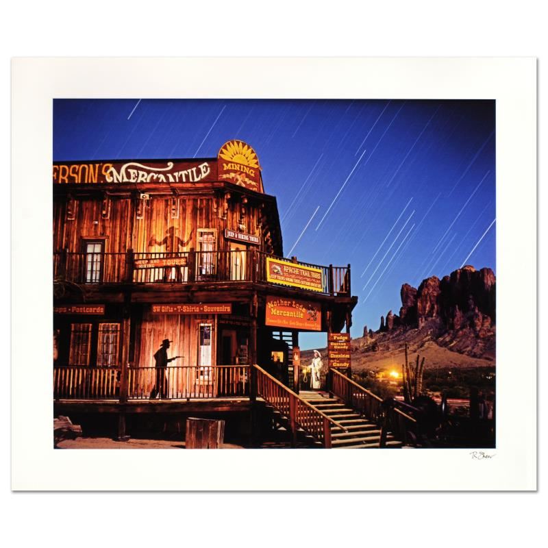 "Goldfield Ghost Town Spirits" is a limited edition on paper, numbered and hand signed by photographer, Robert Sheer. Sheer created this piece using his "Spirit Shadows" technique which involves using a single-exposure ranging from minutes to hours in which he walks into the shot creating figures on film; no photoshop or digital manipulation is involved. Includes Certificate of Authenticity. Measures approx. 24" x 20" (border), 20" x 16" (image).
