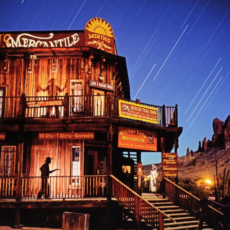 "Goldfield Ghost Town Spirits" is a limited edition on paper, numbered and hand signed by photographer, Robert Sheer. Sheer created this piece using his "Spirit Shadows" technique which involves using a single-exposure ranging from minutes to hours in which he walks into the shot creating figures on film; no photoshop or digital manipulation is involved. Includes Certificate of Authenticity. Measures approx. 24" x 20" (border), 20" x 16" (image).