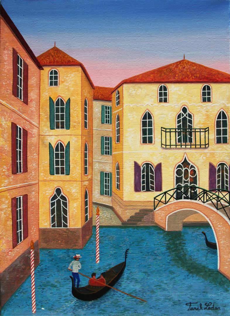 A stretched acrylic original on canvas 13x18.25" Venice and its gondolas is one of Fanch's favorite Cities ; with artists COA.