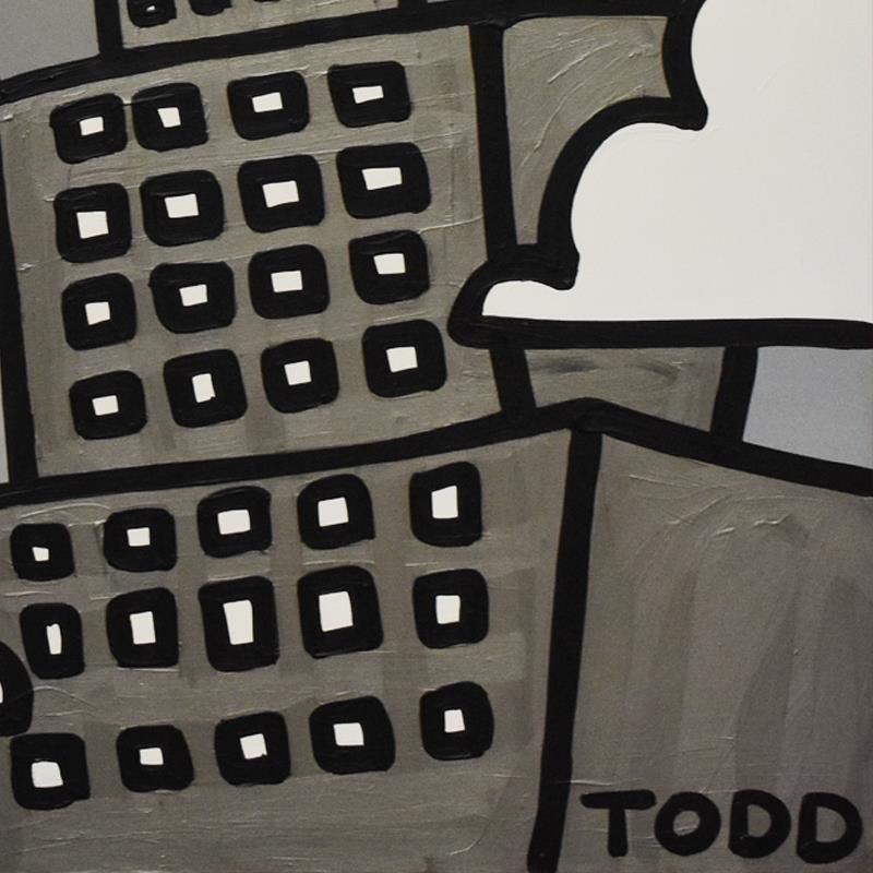 "Goodbye Kitty" is an original acrylic painting on canvas by Todd Goldman, hand signed by the artist. This piece comes gallery wrapped. Includes Letter of Authenticity. Measures approx. 48" x 72" (image). Please note: There is wear on the corners and edges of this piece. This piece is available for free pickup in Los Angeles - contact for more info.