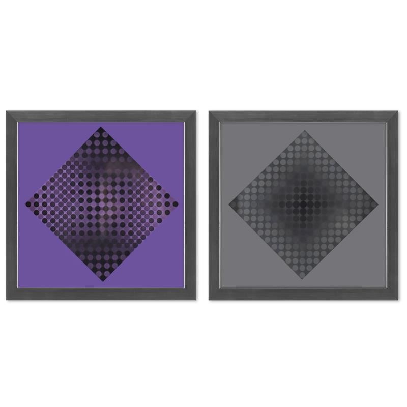 "Goyo - SZ et Goyo - EZ de la série CTA - 102 (Diptych)" is a set of heliogravure prints on paper, published in 1971, by Victor Vasarely (1908-1997). These pieces come custom framed, with a letter of authenticity and with a 1976 Vasarely paperback. Measures approx. 11.5" x 11.5" (frame), 9" x 9" (image).
