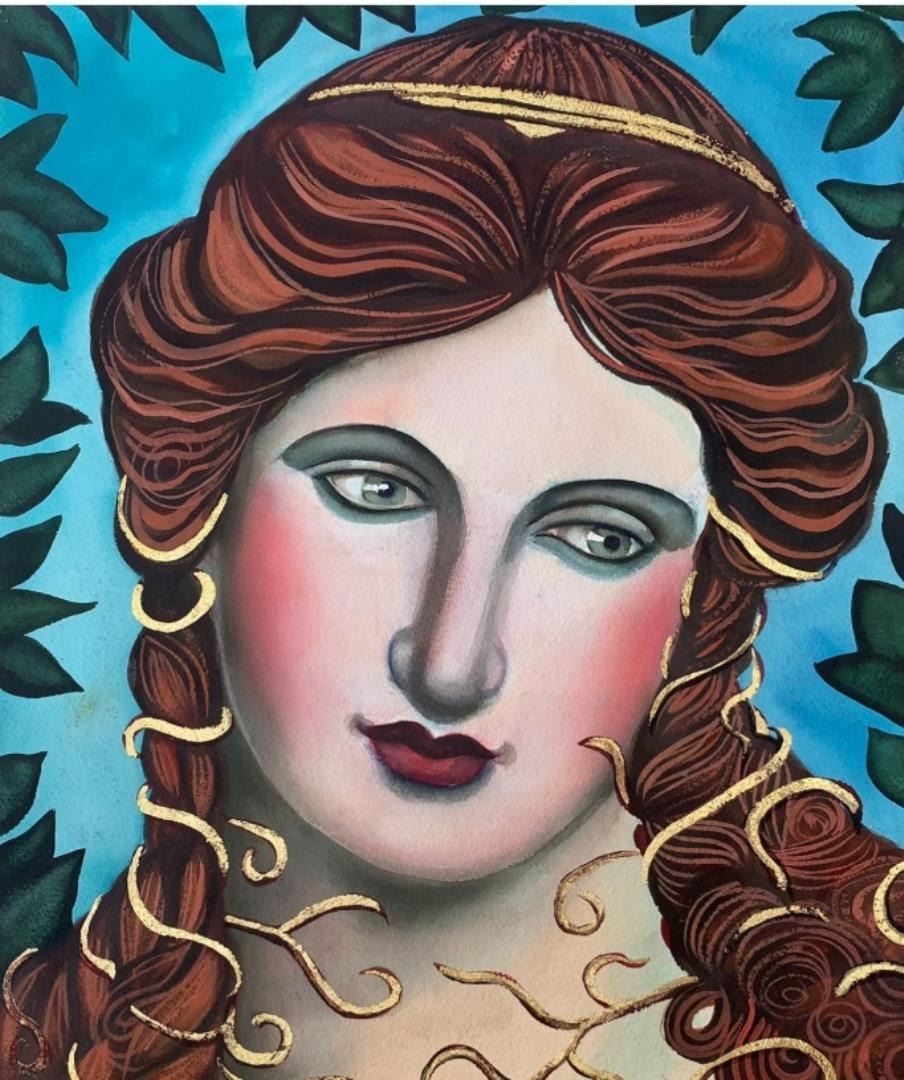 A pastel & watercolor portrait of an unspecified Goddess 21.75"x18". Original on deckled fine art paper, by Anonymous