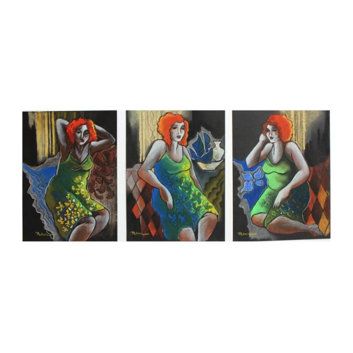 "Green Floral Dress" is an original Pastel on Paper by Patricia Govezensky. The piece is hand signed and comes with a Certificate of Authenticity. Measures approximately 11" x 8".