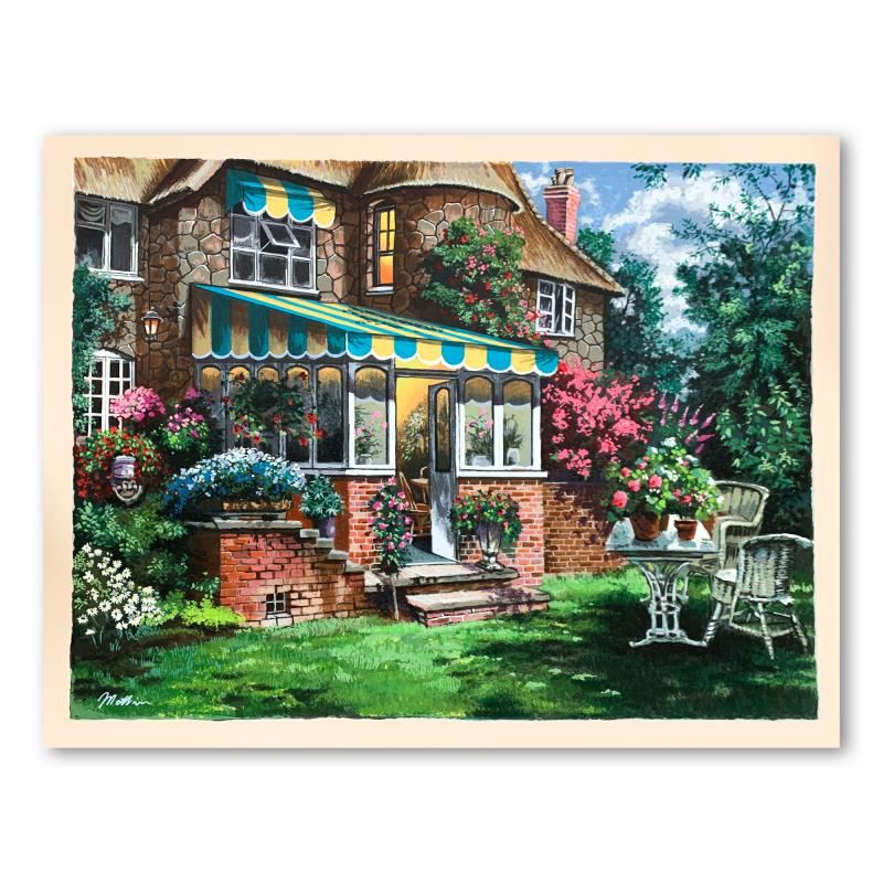"Greenhouse" is a limited edition serigraph on canvas by Anatoly Metlan. It is numbered and hand signed and includes a letter of authenticity. Measures approximately 24" x 18" (image).