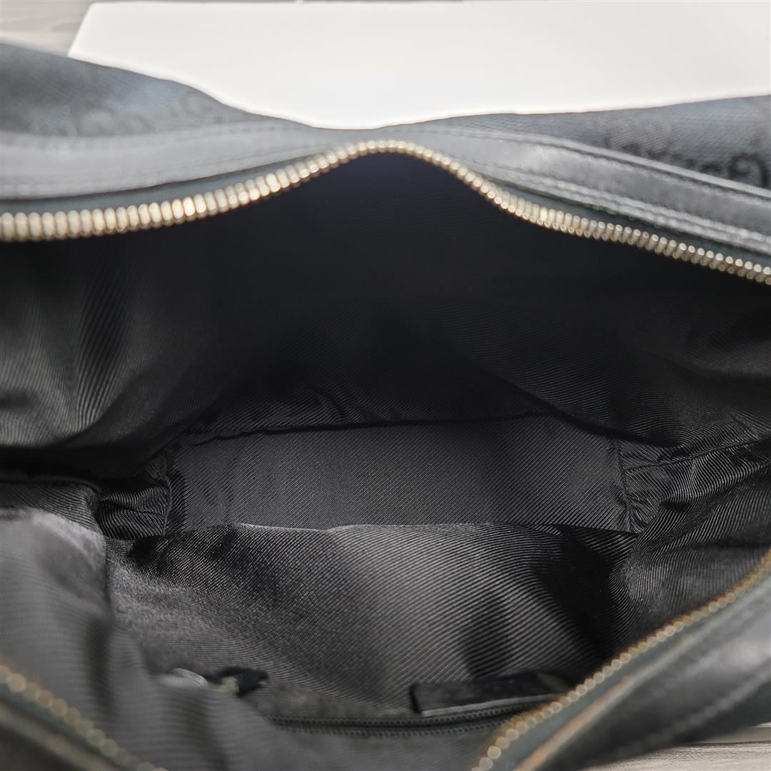 Gucci Black Leather Shoulder Bag with material leather gold-tone hardware, interior slip pockets, leather lining, shoulder strap and zipper closure.