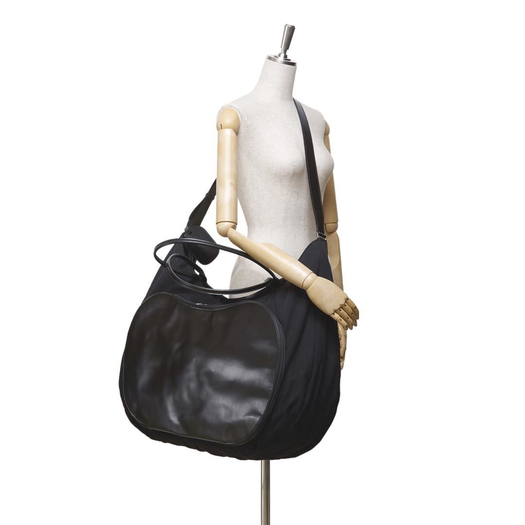 Fabric and vinyl large travel bag with flat straps, and an adjustable shoulder strap, an exterior zip pocket, a top zip closure, an interior compartment, and an interior zip pocket.