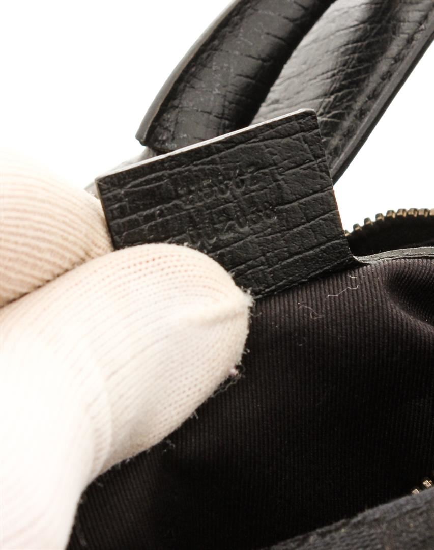 Black GG canvas Gucci Medium Horsebit hobo bag with silver-tone hardware, tonal leather trim, single flat top handle featuring horsebit embellishment, tonal woven interior lining, single zip pocket at interior wall and zip closure at top.
