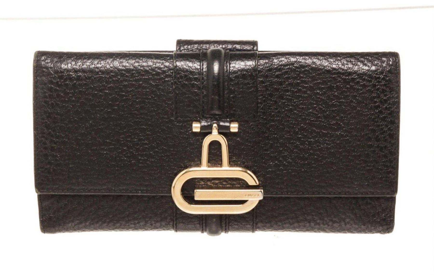 Gucci Black Leather Long Wallet. Gucci Black Leather Long Wallet with material leather, gold-tone hardware, interior cardholder pockets and snap closure.