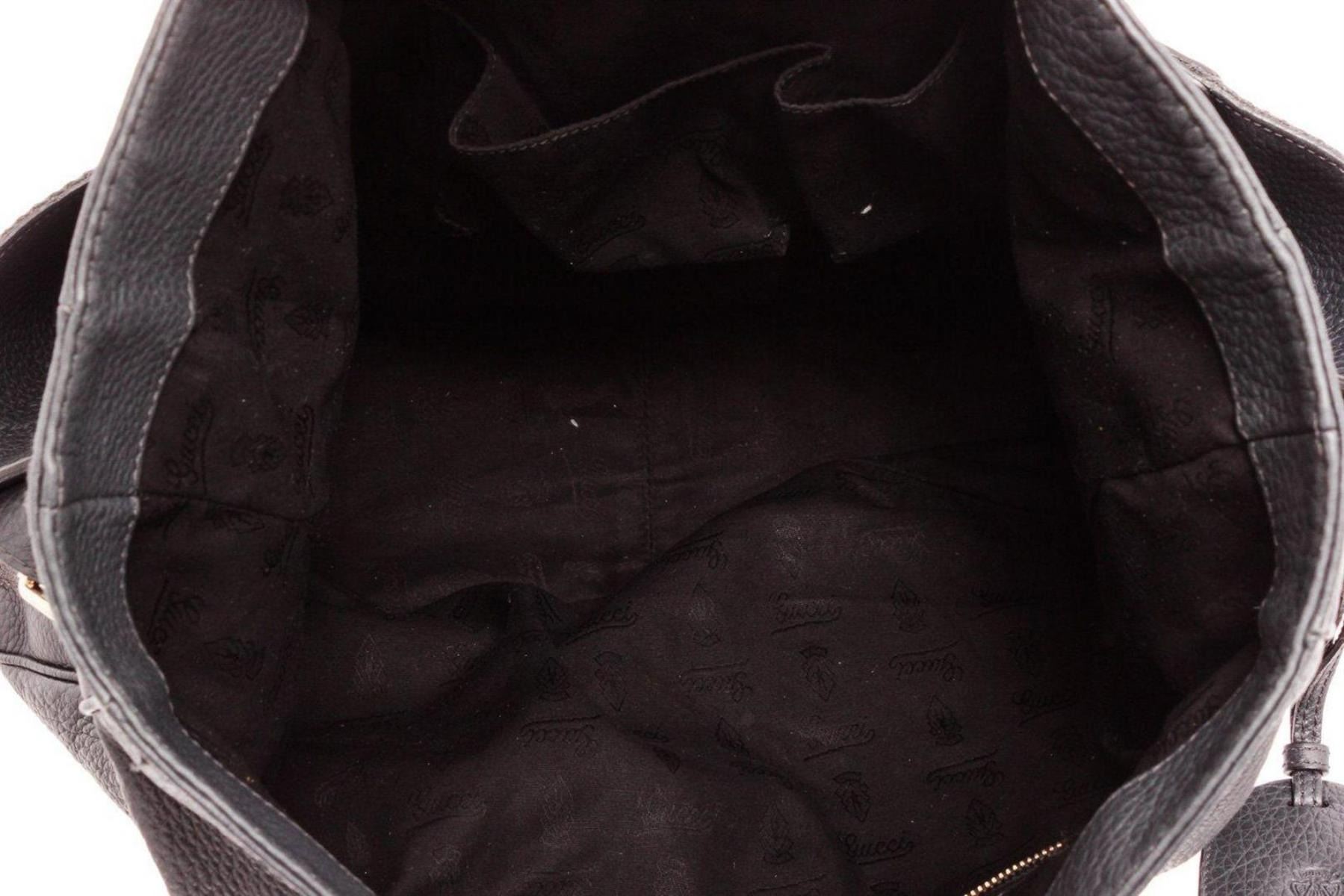 Gucci Black Leather Messenger Bag with silver-tone hardware, brown leather, interior single pockets, single adjustable shoulder strap, and zipper closure. Measurements: Length: 2 in / 5 cm Width: 13.5 in / 34 cm 12.5 in / 32 cm Condition: Pre-Owned Good overall, please see photographs for detail.