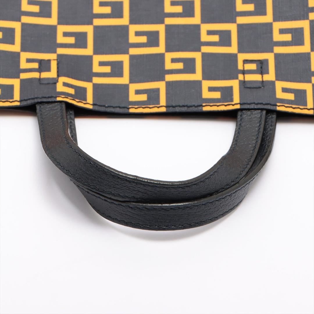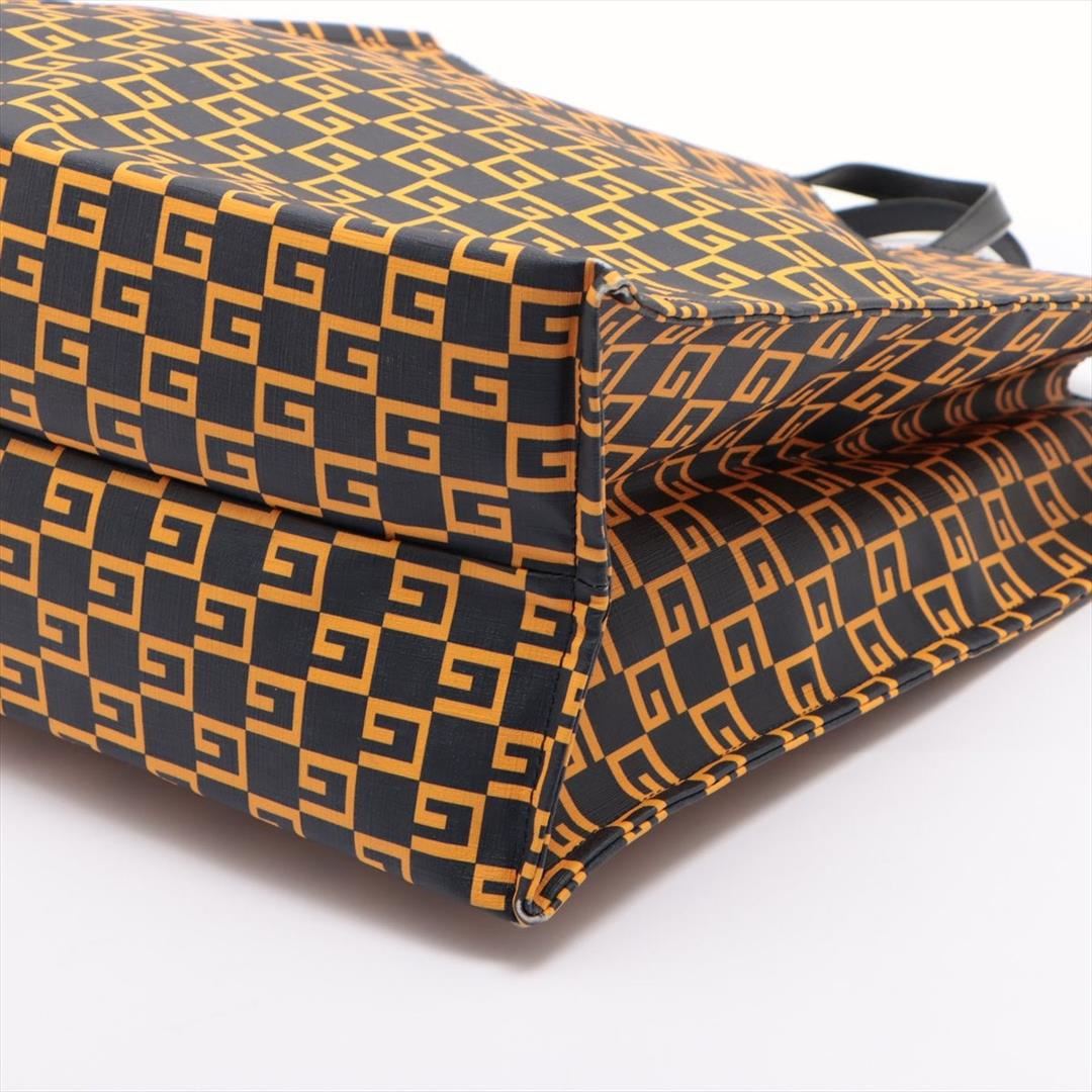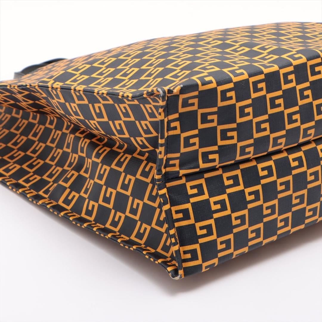 Gucci Black Yellow PVC Leather Square Tote Bag 484690. All available information is listed in the description and shown in the photos. Black and yellow PVC leather Gucci Square tote bag with black leather trim, dual flat top handles and gray microfiber lining. Handle Drop 3.5", Height 17.5", Width 16", Depth 7.5"
