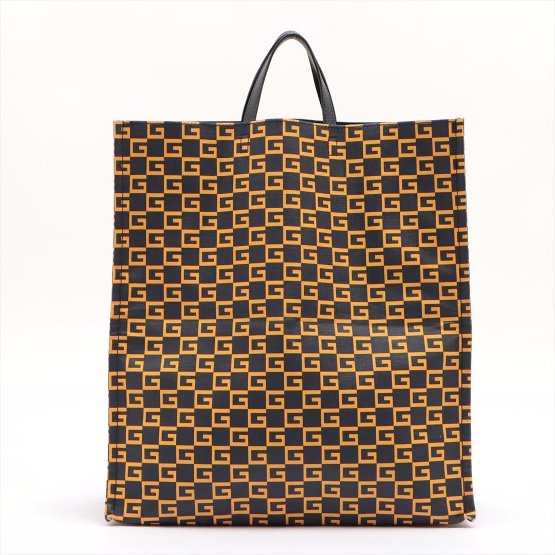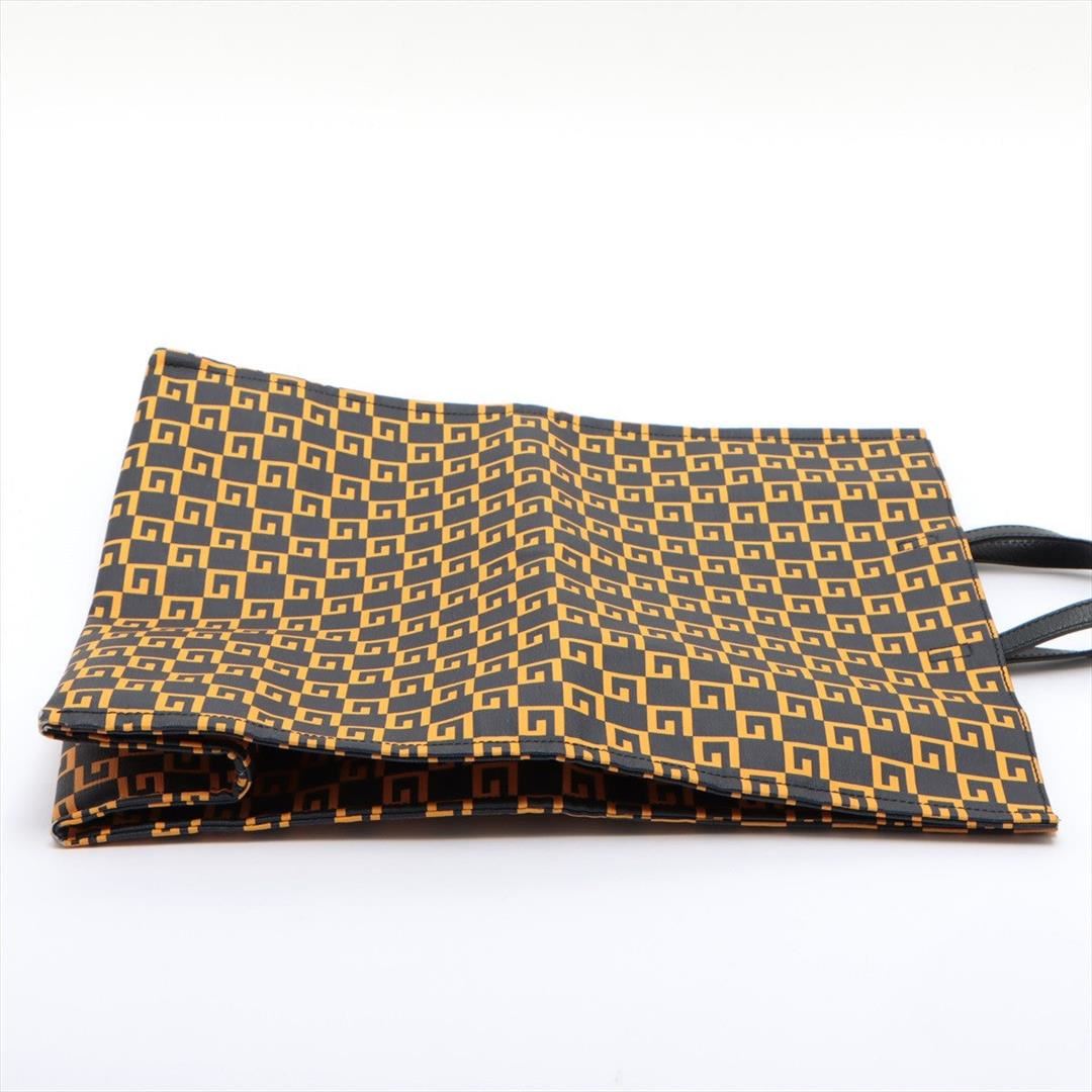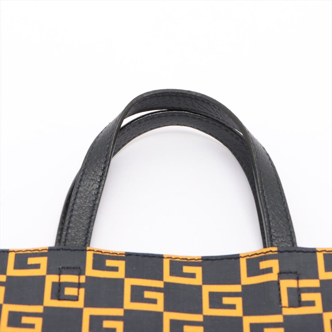 Gucci Black Yellow PVC Leather Square Tote Bag 484690. All available information is listed in the description and shown in the photos. Black and yellow PVC leather Gucci Square tote bag with black leather trim, dual flat top handles and gray microfiber lining. Handle Drop 3.5", Height 17.5", Width 16", Depth 7.5"