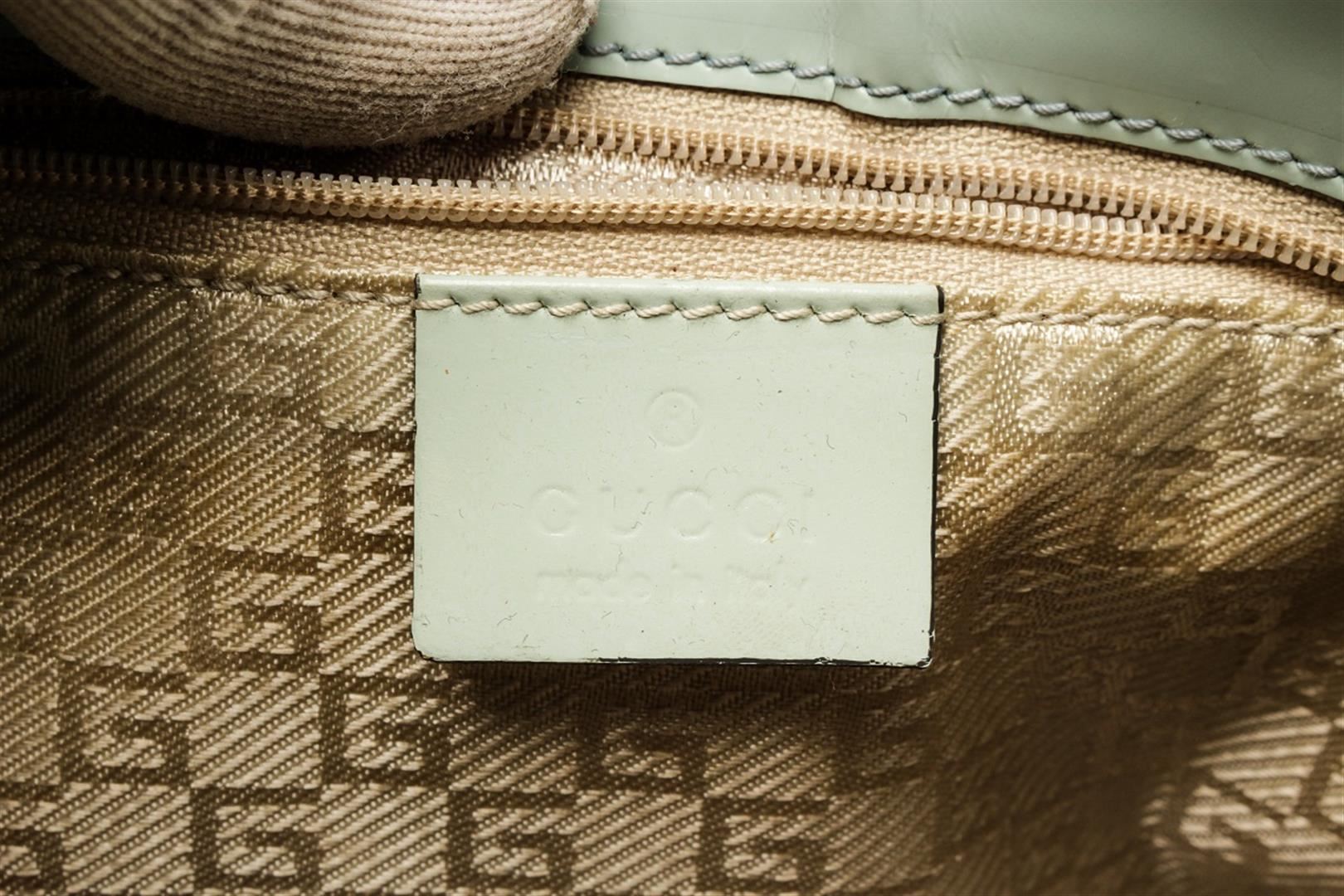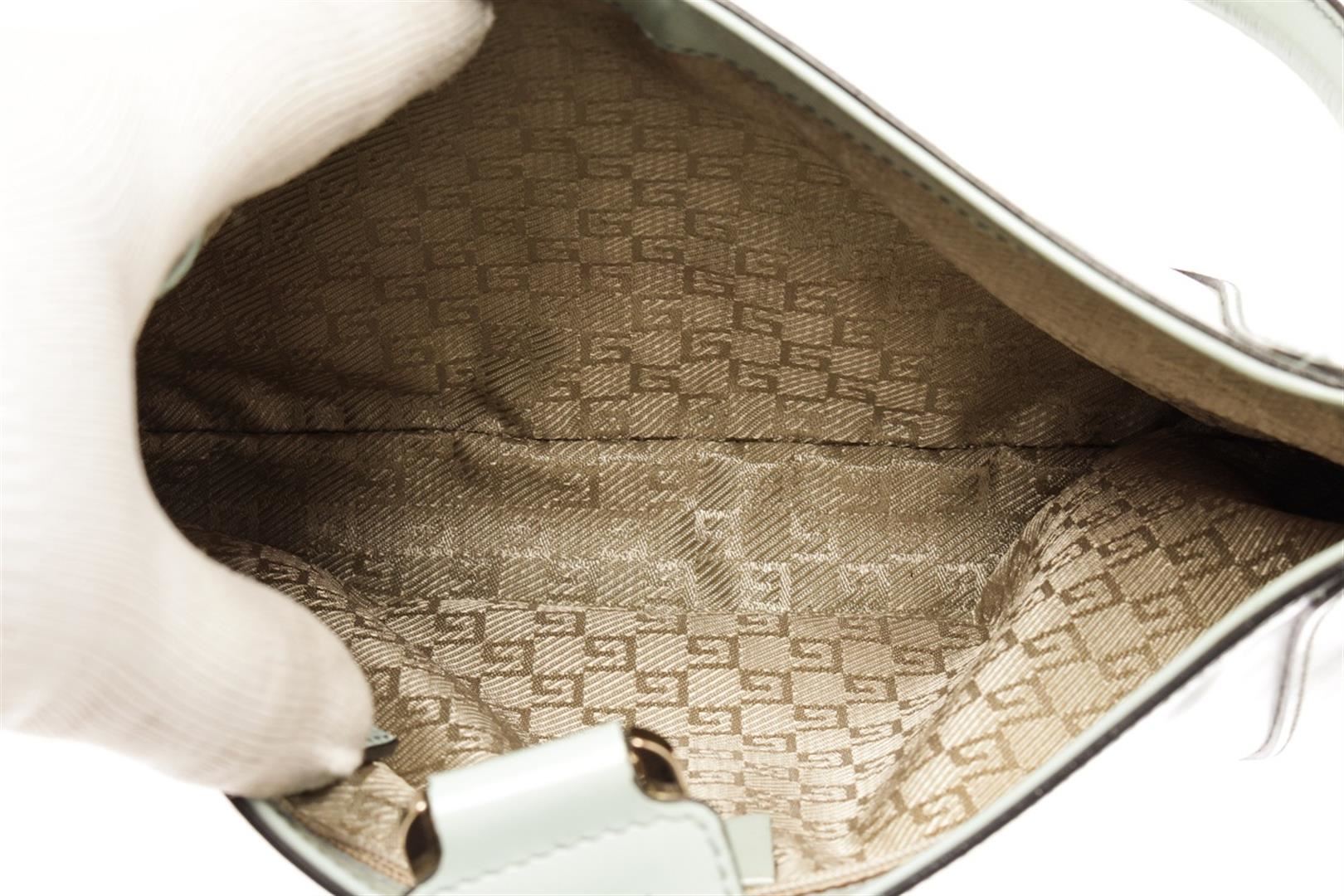 Gucci Blue Leather Lady Lock Shoulder Bag. All available information is listed in the description and shown in the photos. gucci blue leather lady lock shoulder bag with patent leather, shoulder strap handle Height: 12" Width: 1.5" Depth: 7", Shoulder Strap Drop: / 30.48 x 3.81 x 17.78 Cm