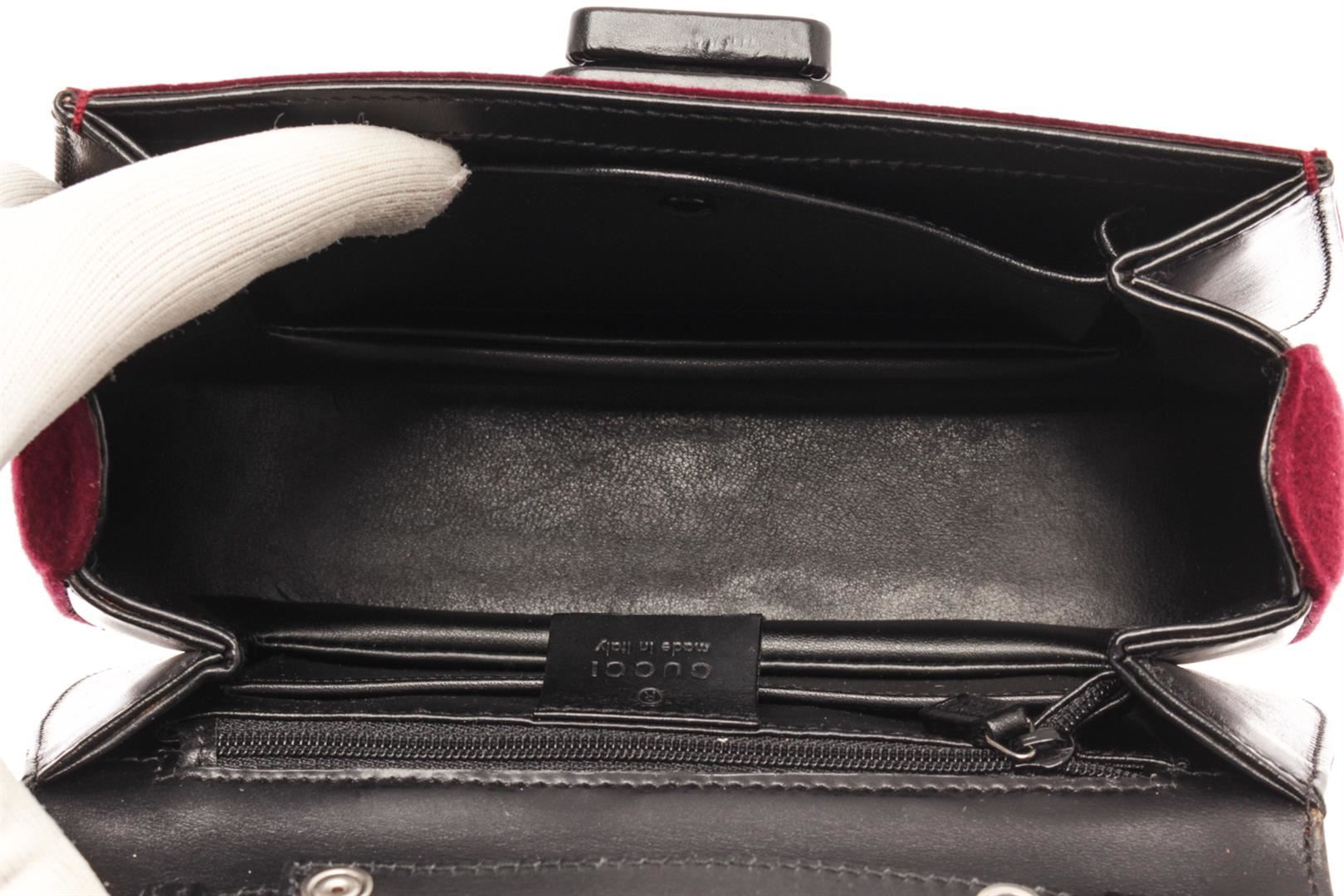 Gucci Burgandy Maroon Velvet Top Handle Bag. All available information is listed in the description and shown in the photos. Gucci Burgandy Maroon Velvet Top Handle Bag with gold-tone hardware, maroon velvet body and a leather handle and turn lock closure. Interior is lined in leather and features a slip pocket with a button closure, a zip pocket and small slip pocket. 18cm (length) x 7cm (depth) x 15cm (height) /7.08" x 2.75" x 5.90" Inches
