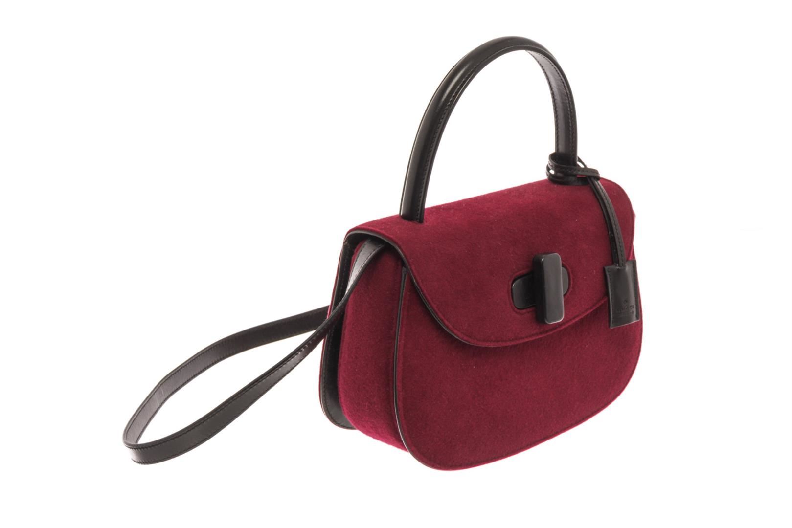 Gucci Burgandy Maroon Velvet Top Handle Bag. All available information is listed in the description and shown in the photos. Gucci Burgandy Maroon Velvet Top Handle Bag with gold-tone hardware, maroon velvet body and a leather handle and turn lock closure. Interior is lined in leather and features a slip pocket with a button closure, a zip pocket and small slip pocket. 18cm (length) x 7cm (depth) x 15cm (height) /7.08" x 2.75" x 5.90" Inches