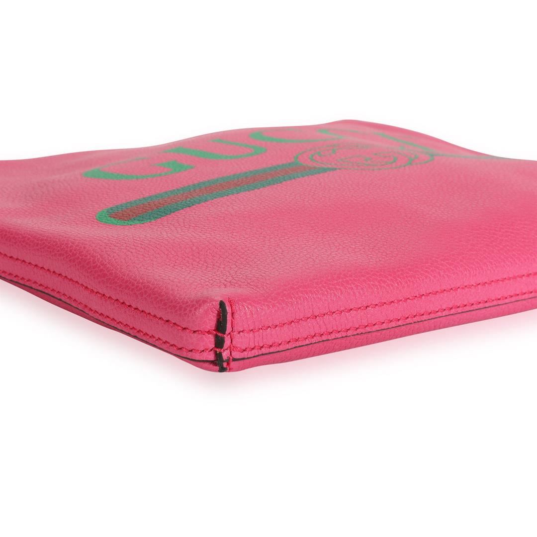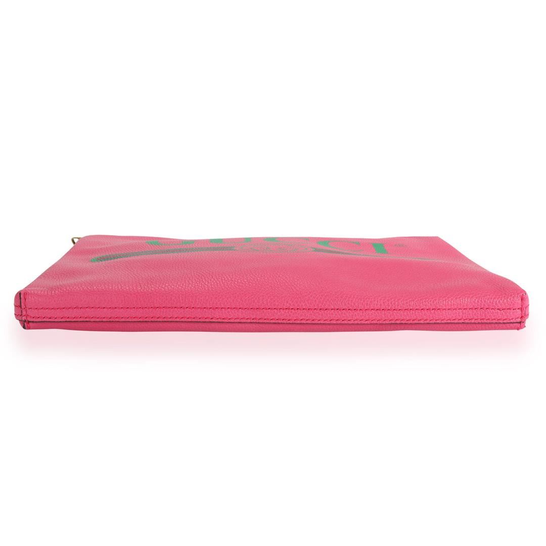 One Gucci Hot Pink Leather Portfolio Clutch. Item is sold AS-IS. All available information is listed in the description and shown in the photo. Gucci Hot Pink Leather Portfolio Clutch. Features gold hardware, pink canvas interior, pink leather exterior, and a gold zipper closure.