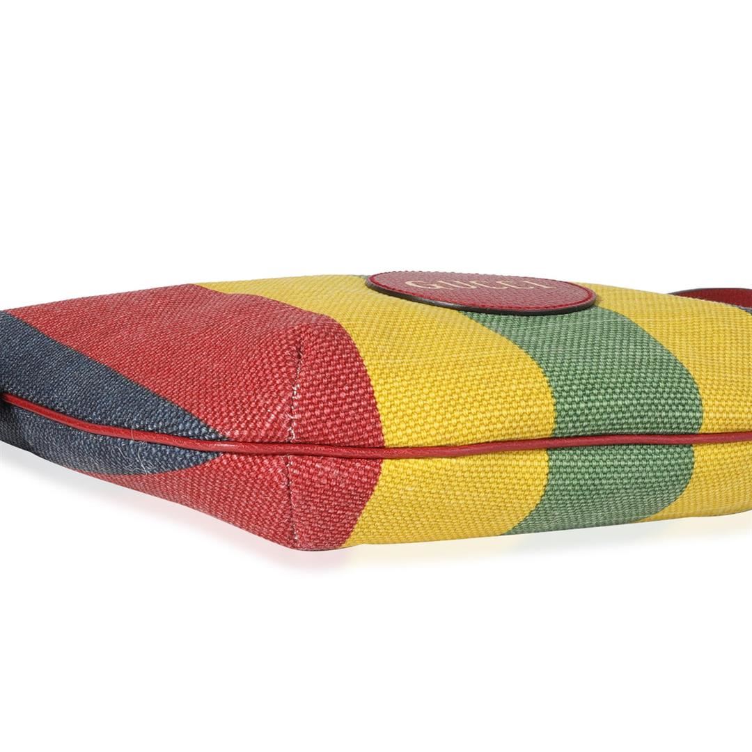 One Gucci Multicolor Striped Canvas Hobo Bag. Item is sold AS-IS. All available information is listed in the description and shown in the photo. Gucci Multicolor Striped Canvas Hobo Bag. Features gold hardware, red leather strap, white canvas interior with a zipper pocket, and a gold zipper closure.