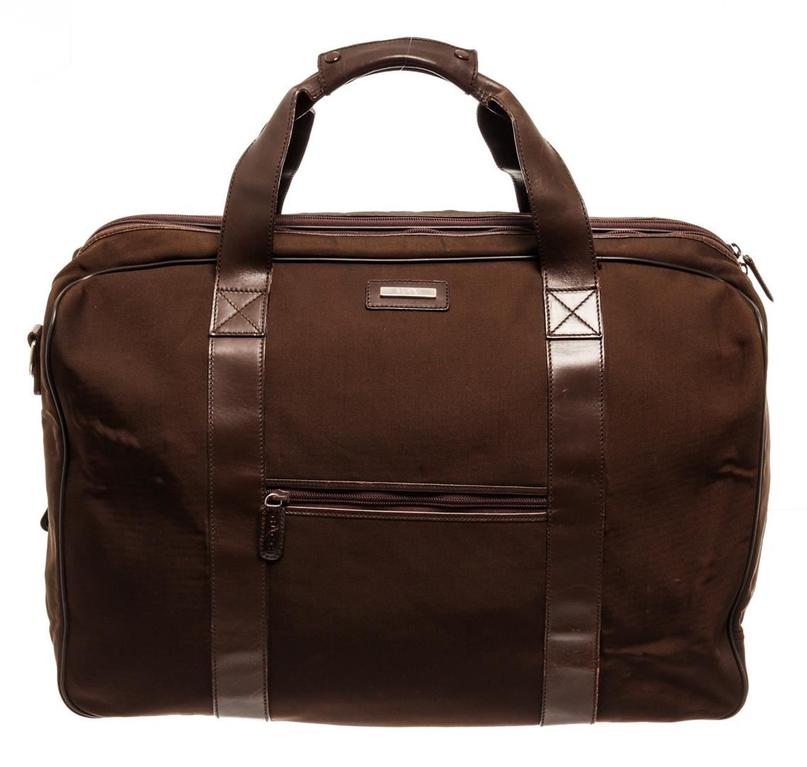One Gucci Travel Luggage. Item is sold AS-IS. All available information is listed in the description and shown in the photo. Gucci travel luggage with brown fabric exterior, two top handles, zipper closure, and one zip interior pocket.