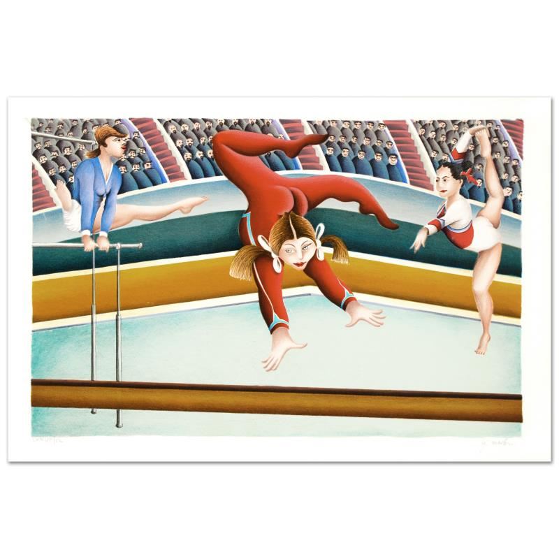 "Gymnast" is a limited edition serigraph on paper, numbered and hand signed by Yuval Mahler. Includes Certificate of Authenticity! Measures approx. 22" x 15" (with border), 20" x 13" (image).