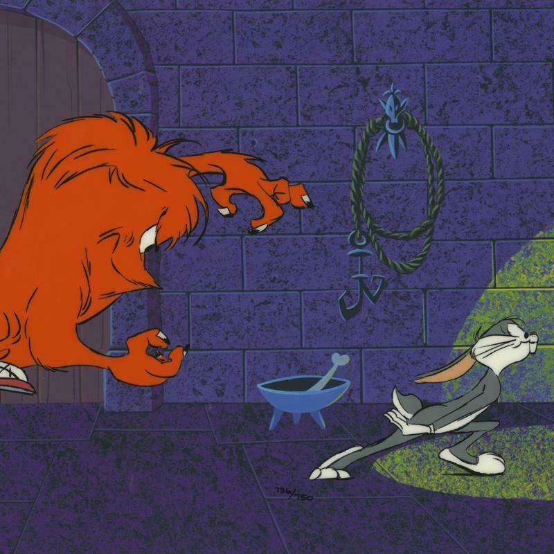 "Hair Raising Hare" is a limited edition animation cel with hand painted coloring on sericel outline. The piece is numbered, hand signed by Chuck Jones (1912-2002), and includes a Certificate of Authenticity! Measures Approx: 33" x 13.5"