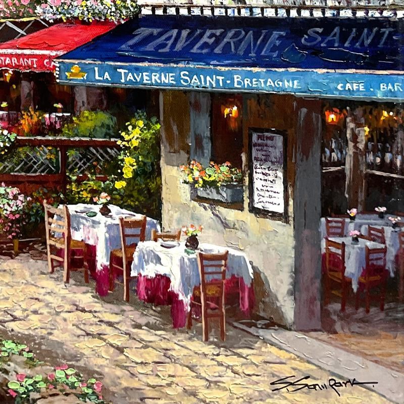 "Harbor at Honfleur" is a hand embellished limited edition publisher's proof on stretched canvas by Sam Park, numbered and hand signed by the artist. Includes Letter of Authenticity. Measures approx. 18" x 24" (image). There may be minor wear on the corners and edges.