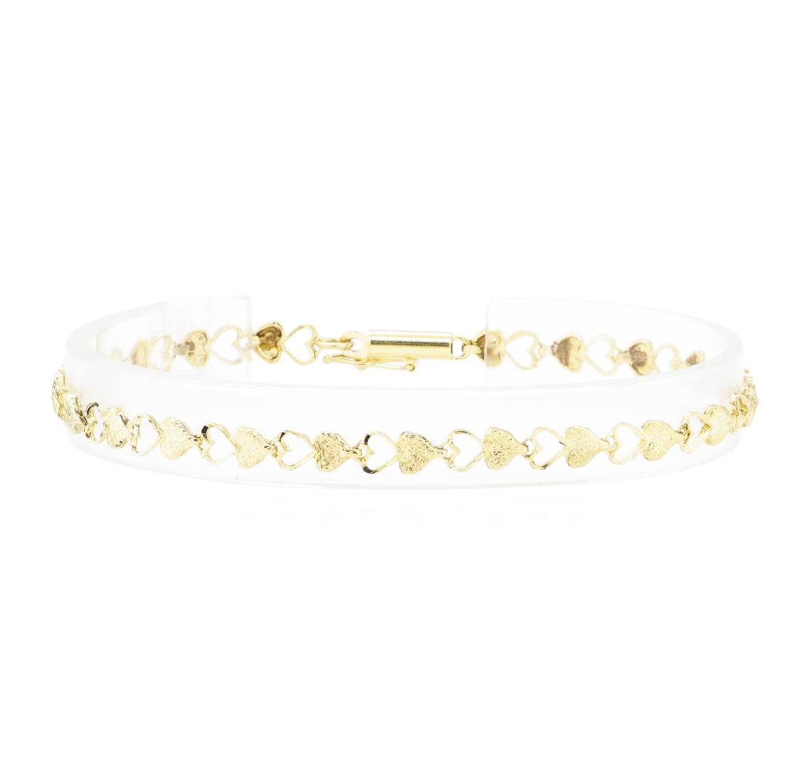 One heart link bracelet measuring approximately seven inches in length and 4.5mm in width featuring: 14KT yellow gold weighing 4.0 grams.