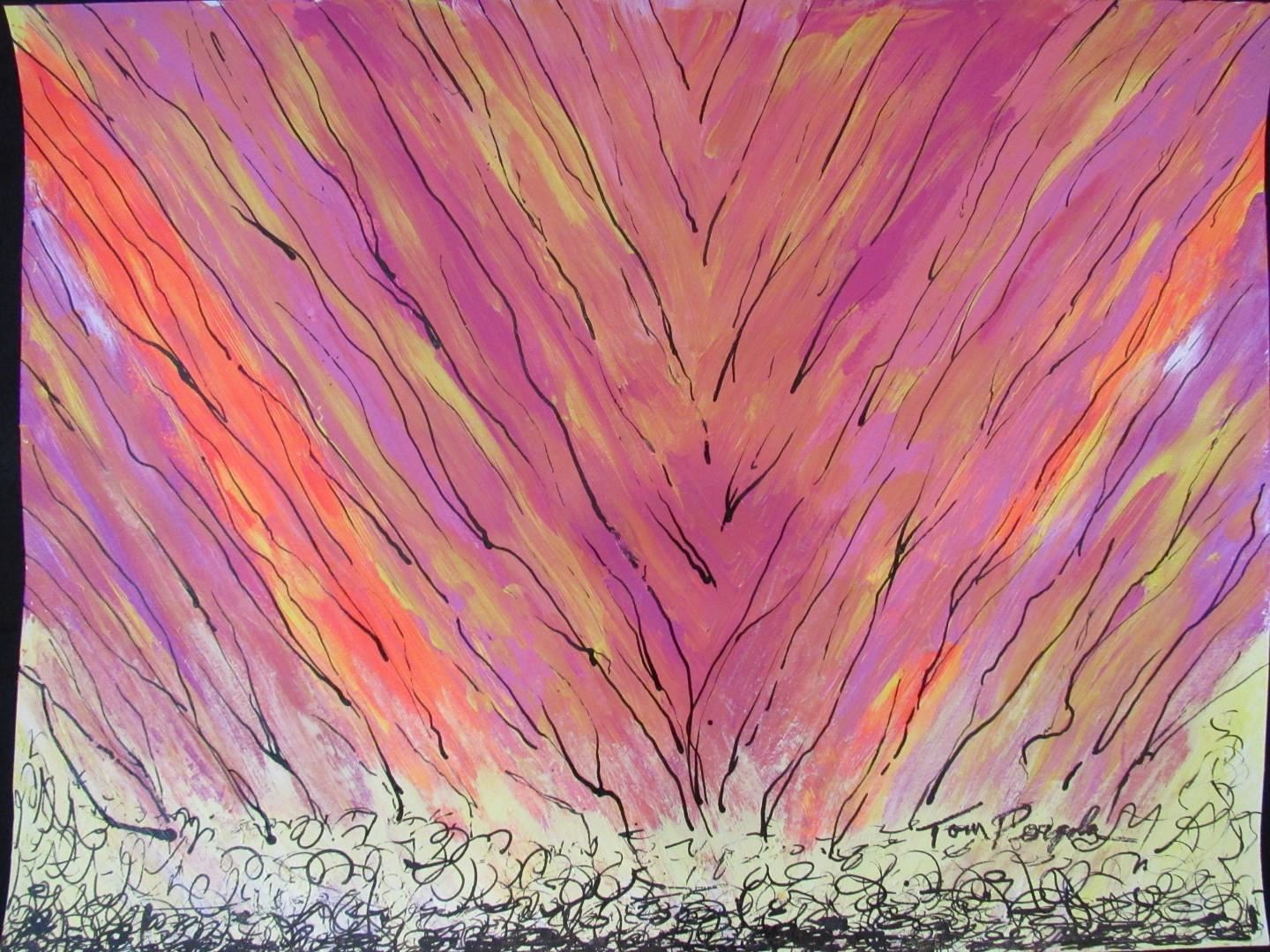 A colorful abstract acrylic painting by California artist Tom Pergola. 18x24" on irregular acid-free art paper, with COA.