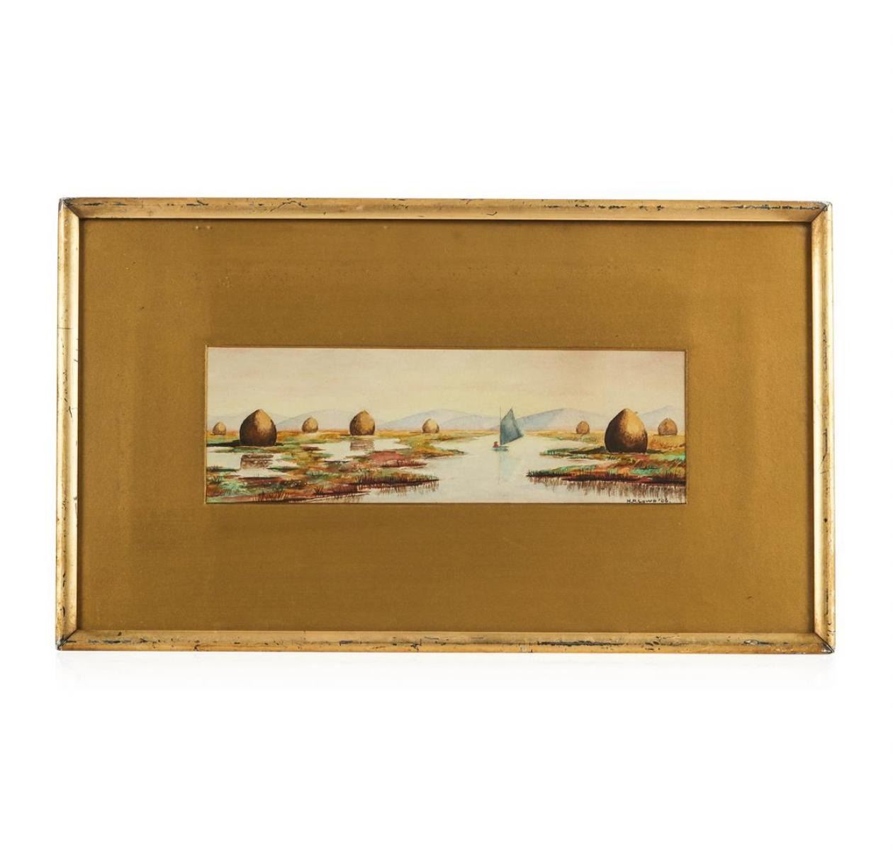 This piece is an original antique watercolor painting by listed artist Henry R Lowd, signed lower right with '06 date. Measures framed 15.25" x 9", the artwork measures 9.5" x 3". The piece is in a turn of the century original framer
