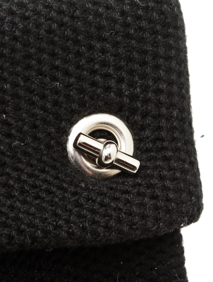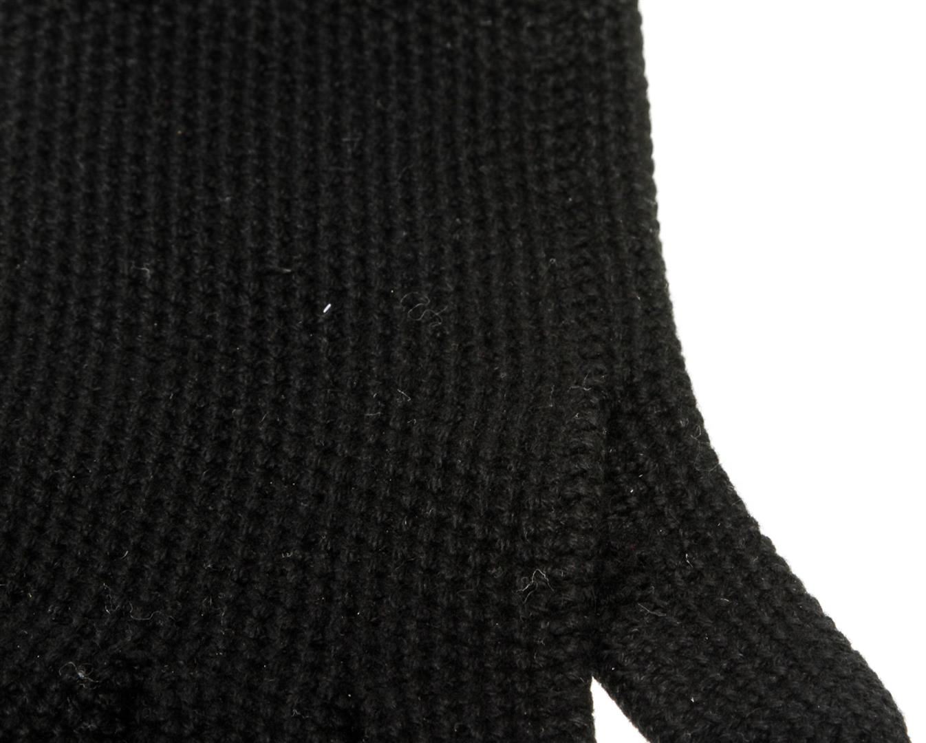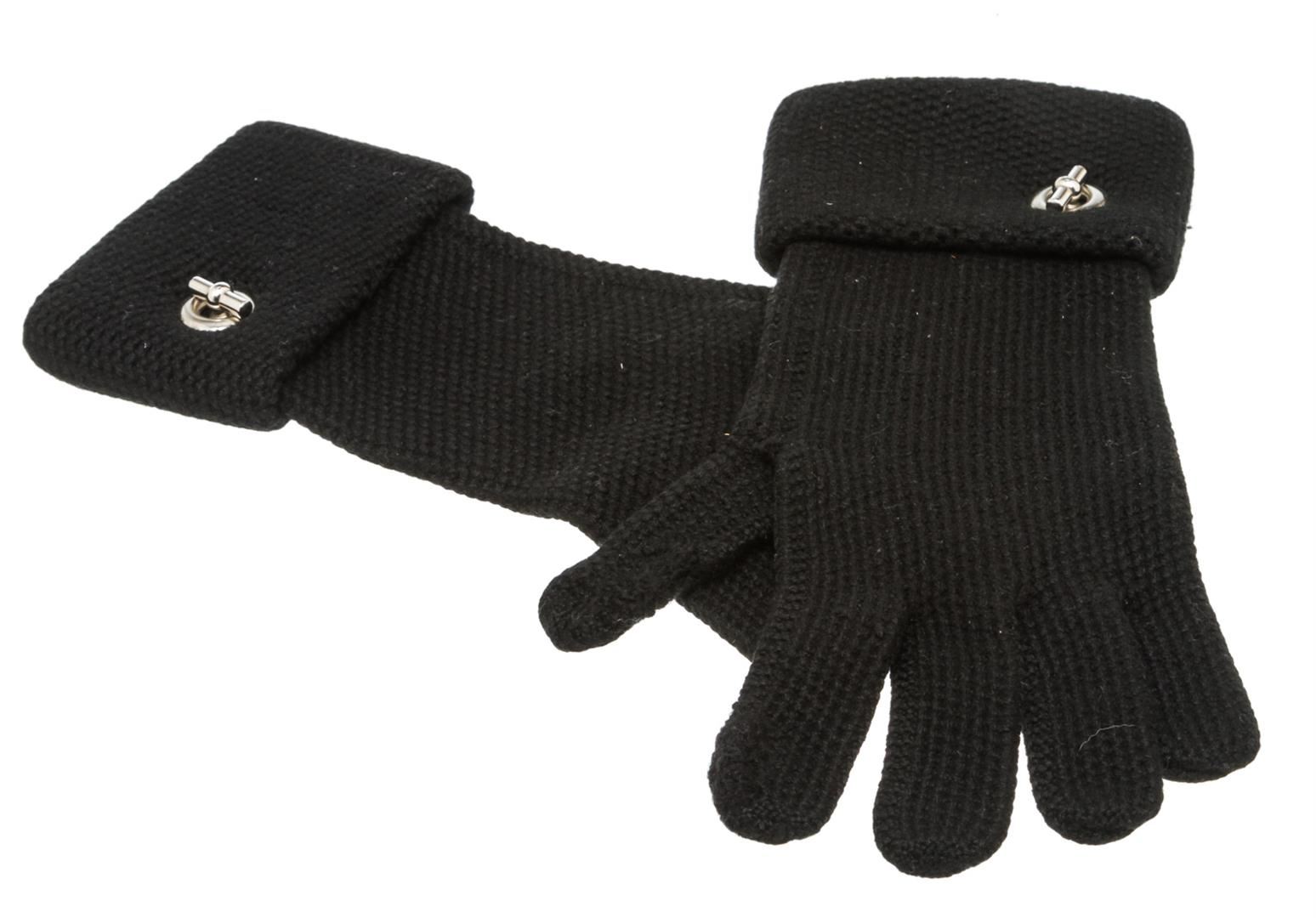Hermes black cashmere knit fold over gloves with palladium plated hardware accents.