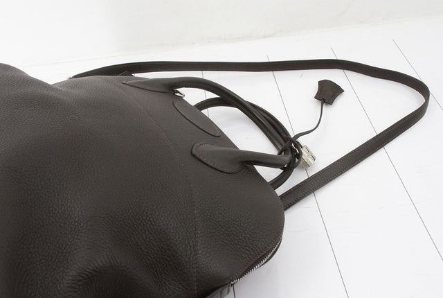 One Hermes Black Togo Leather Bolide 35cm Shoulder Bag. Item is sold AS-IS. All available information is listed in the description and shown in the photo. Hermes Bolide 35 cm shoulder bag feature black Togo leather, palladium hardware, black leather trim, dual top rolled handles, single detachable and adjustable shoulder strap, zipper closure at top, black leather lining and one flat pocket inside. 14" x 5.5" x 10.5" Handle Drop: 4" and 18"