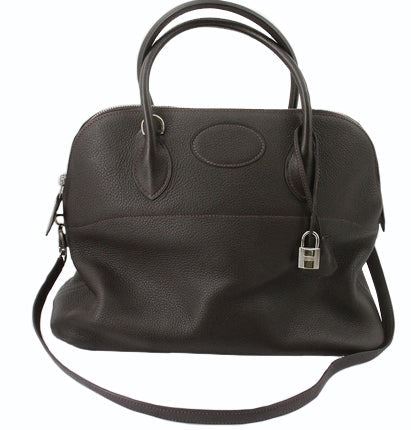 One Hermes Black Togo Leather Bolide 35cm Shoulder Bag. Item is sold AS-IS. All available information is listed in the description and shown in the photo. Hermes Bolide 35 cm shoulder bag feature black Togo leather, palladium hardware, black leather trim, dual top rolled handles, single detachable and adjustable shoulder strap, zipper closure at top, black leather lining and one flat pocket inside. 14" x 5.5" x 10.5" Handle Drop: 4" and 18"