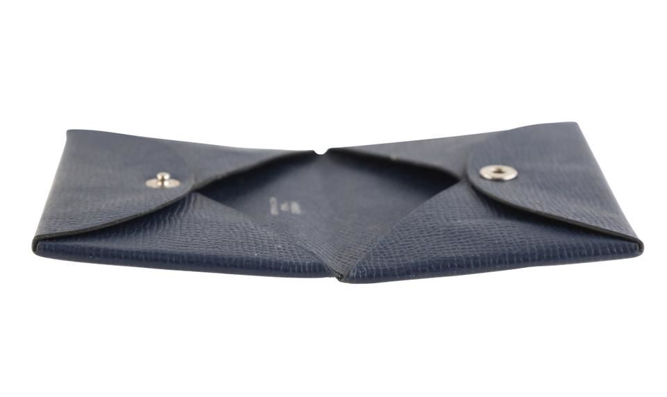 One Hermes Blue Calvi Bleu De Malte Epsom Leather Card Holder Wallet. Hermes Calvi Bleu De Malte Epsom Leather Card Holder Snap closure Silver tone hardware Epsom leather Dual card slots can fit up to - cards Made in France
