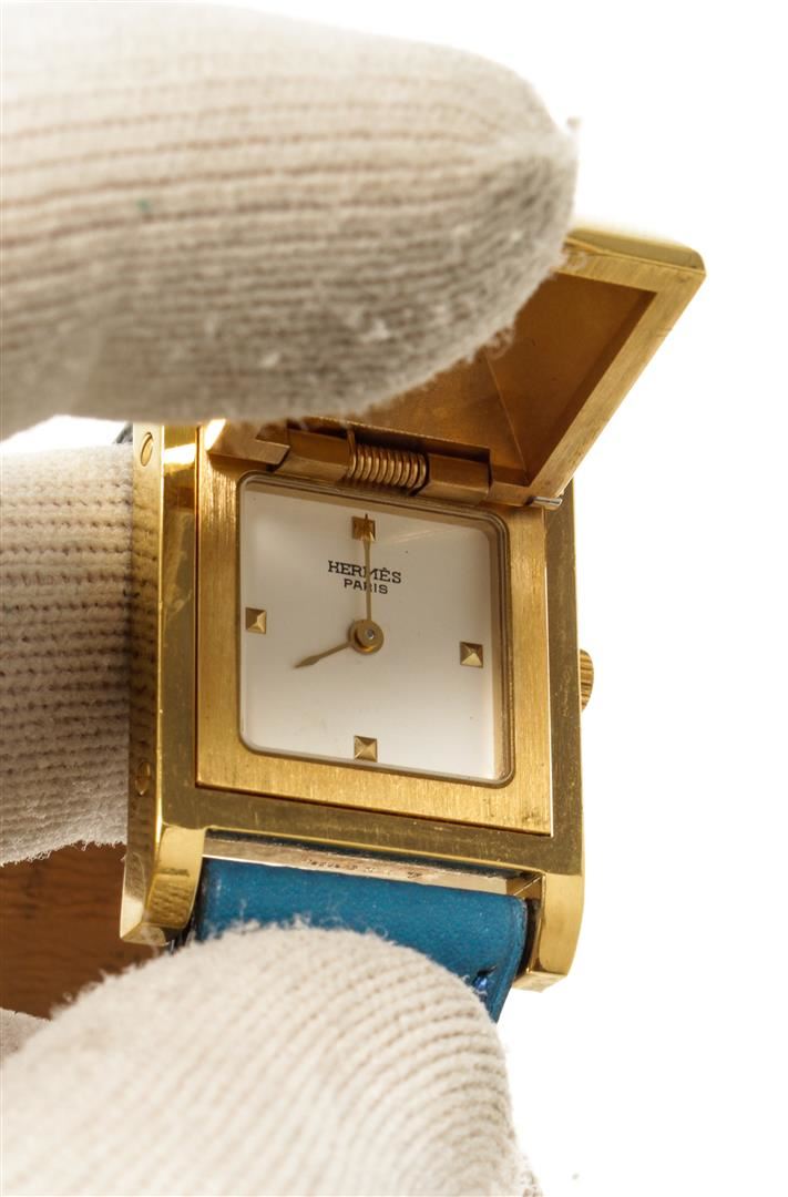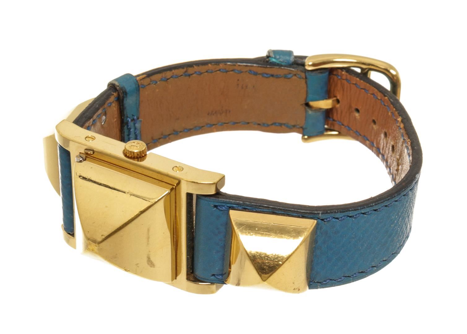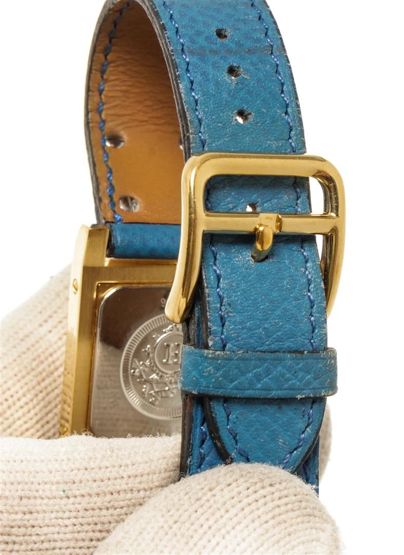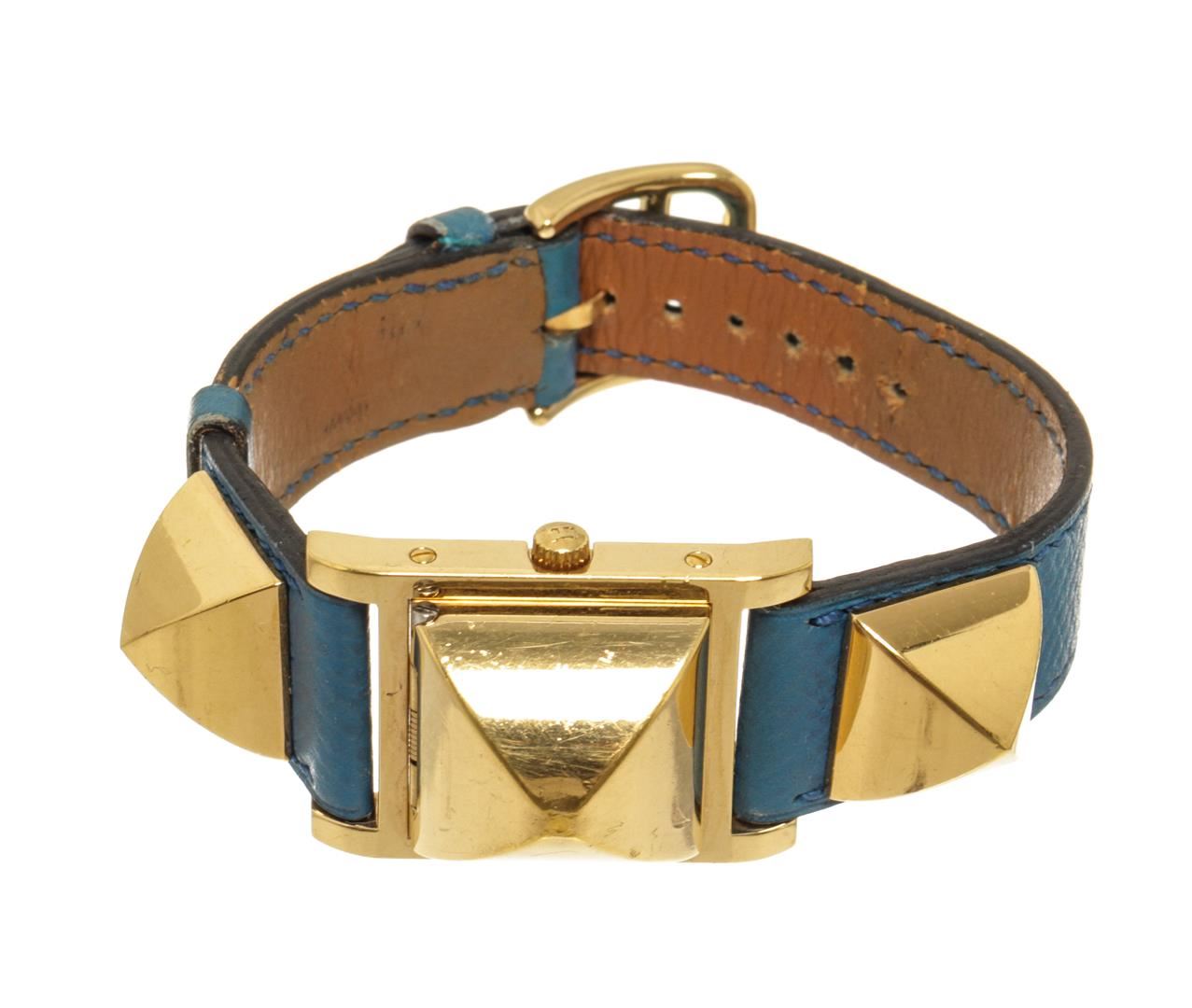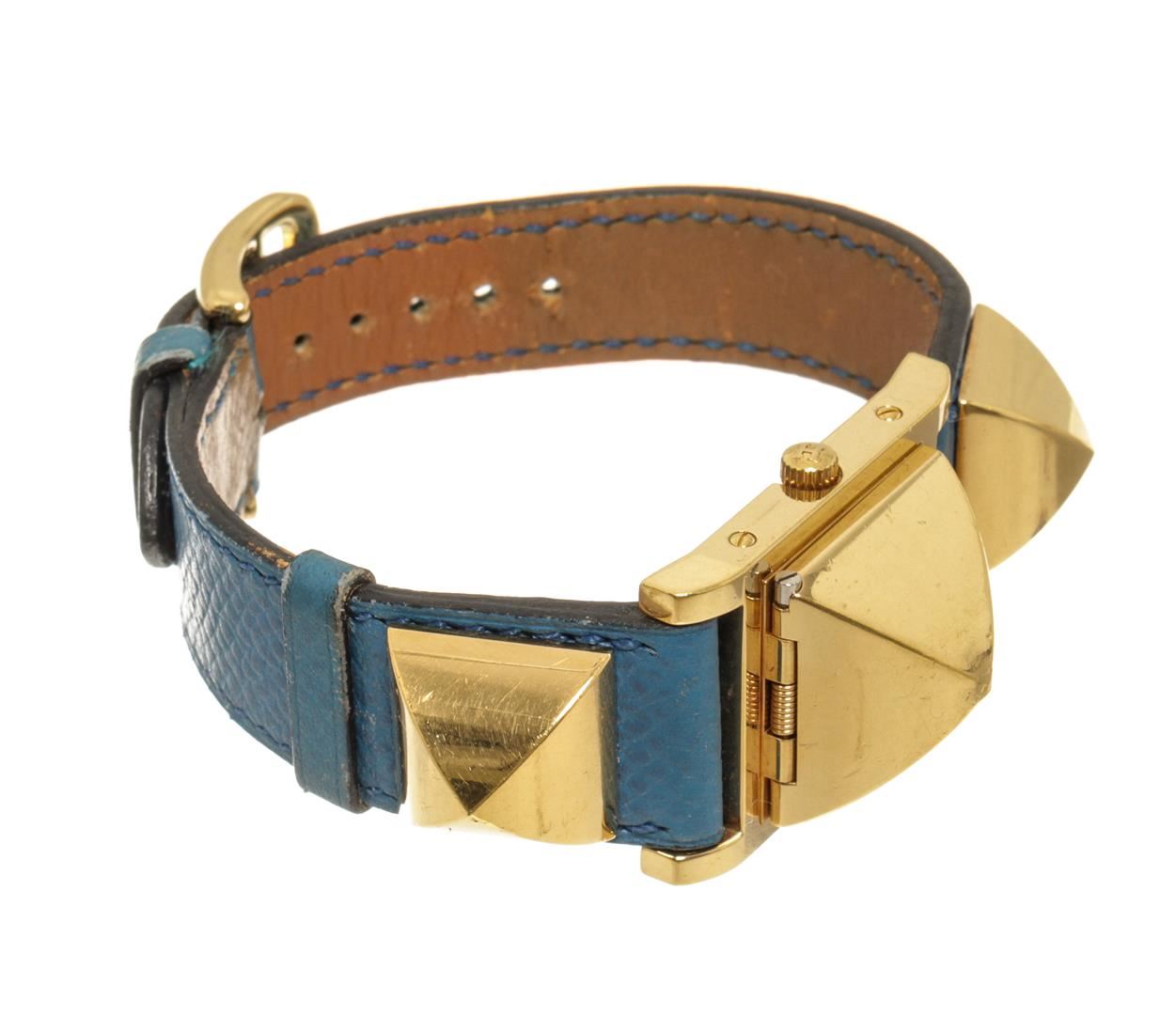 One Hermes Blue gold-Plated and Leather Medor Quartz 20mm Watch. Item is sold AS-IS. All available information is listed in the description and shown in the photo. Hermes Blue gold-Plated and Leather Medor Quartz 20mm Watch