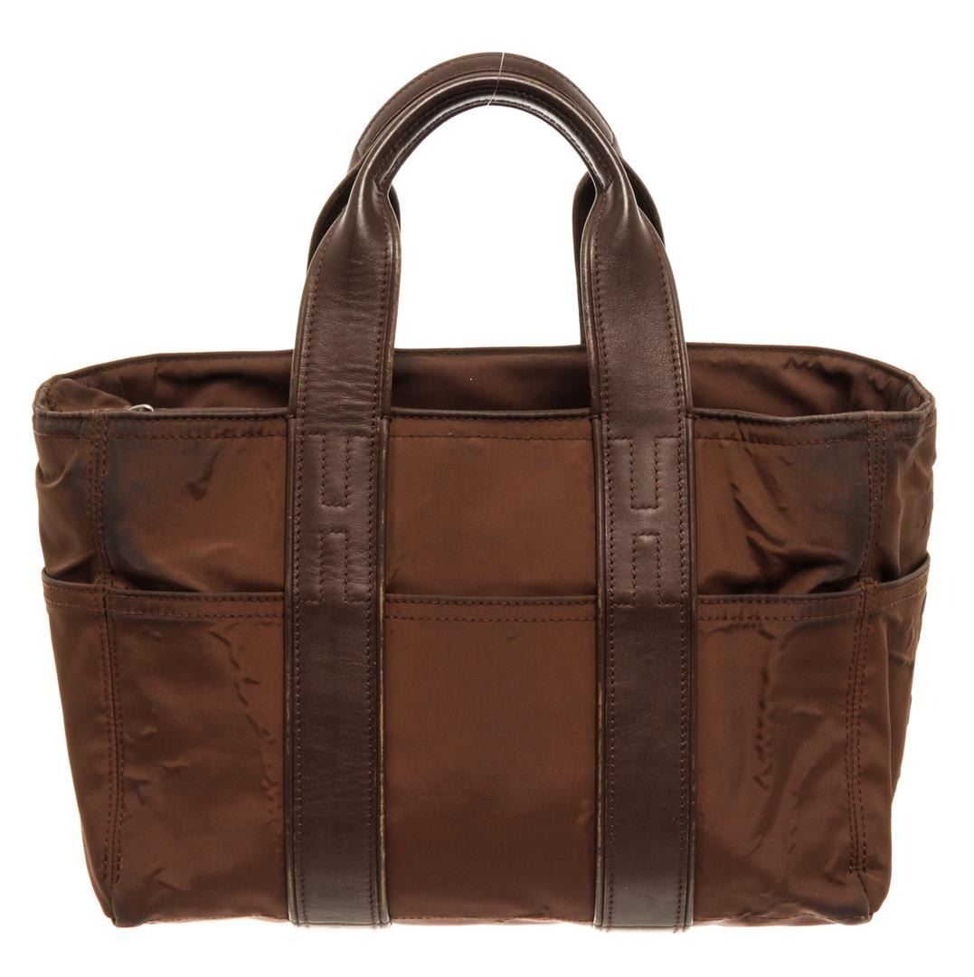 Hermes Brown Nylon and Leather Acapulco Tote Bag. All available information is listed in the description and shown in the photos. Hermes Brown Nylon and Leather Acapulco Tote Bag with silver-tone hardware, dual top straps, interior zip pocket, and zipper closure. VINTAGE. MATERIAL STICKY. DISCOLORATION.