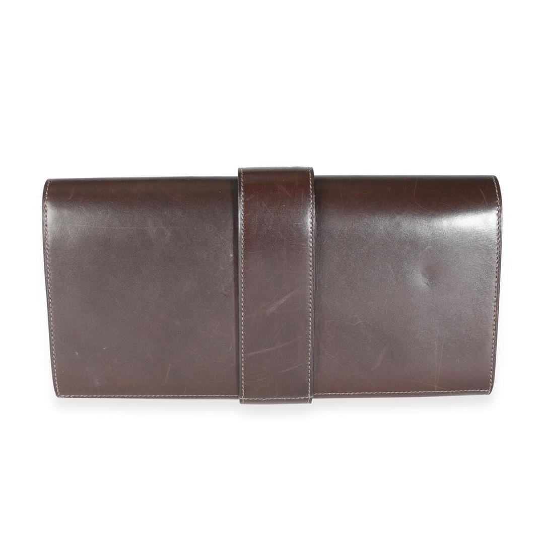 Hermes Chocolat Box Calfskin Medor 29. All available information is listed in the description and shown in the photos. Hermes Chocolat Box Calfskin Medor 29. Features gold hardware, brown leather interior with 1 pocket, and a clasp closure.