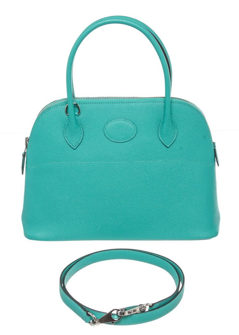 One Hermes Emerald Green Epson Leather Bolide 27cm Shoulder Bag. Item is sold AS-IS. All available information is listed in the description and shown in the photo. Hermes Blue Leather Bolide 27cm Shoulder Bag with leather, gold-tone hardware, trim leather, dual top handle and zipper closure.
