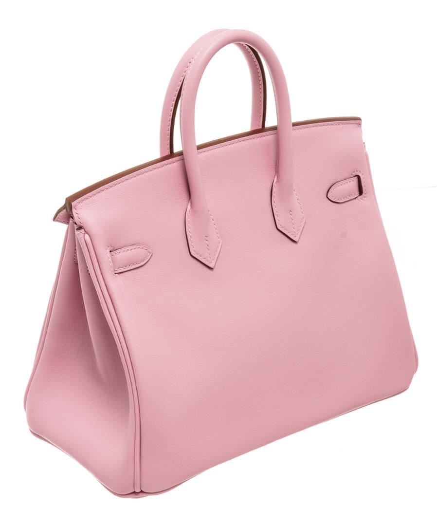 Hermes Mauve Chamonix Birkin 25. All available information is listed in the description and shown in the photos. Hermes Mauve Chamonix Birkin 25 with top handle, leather lining, interior pocket, palladium plated hardware, turn lock closure.