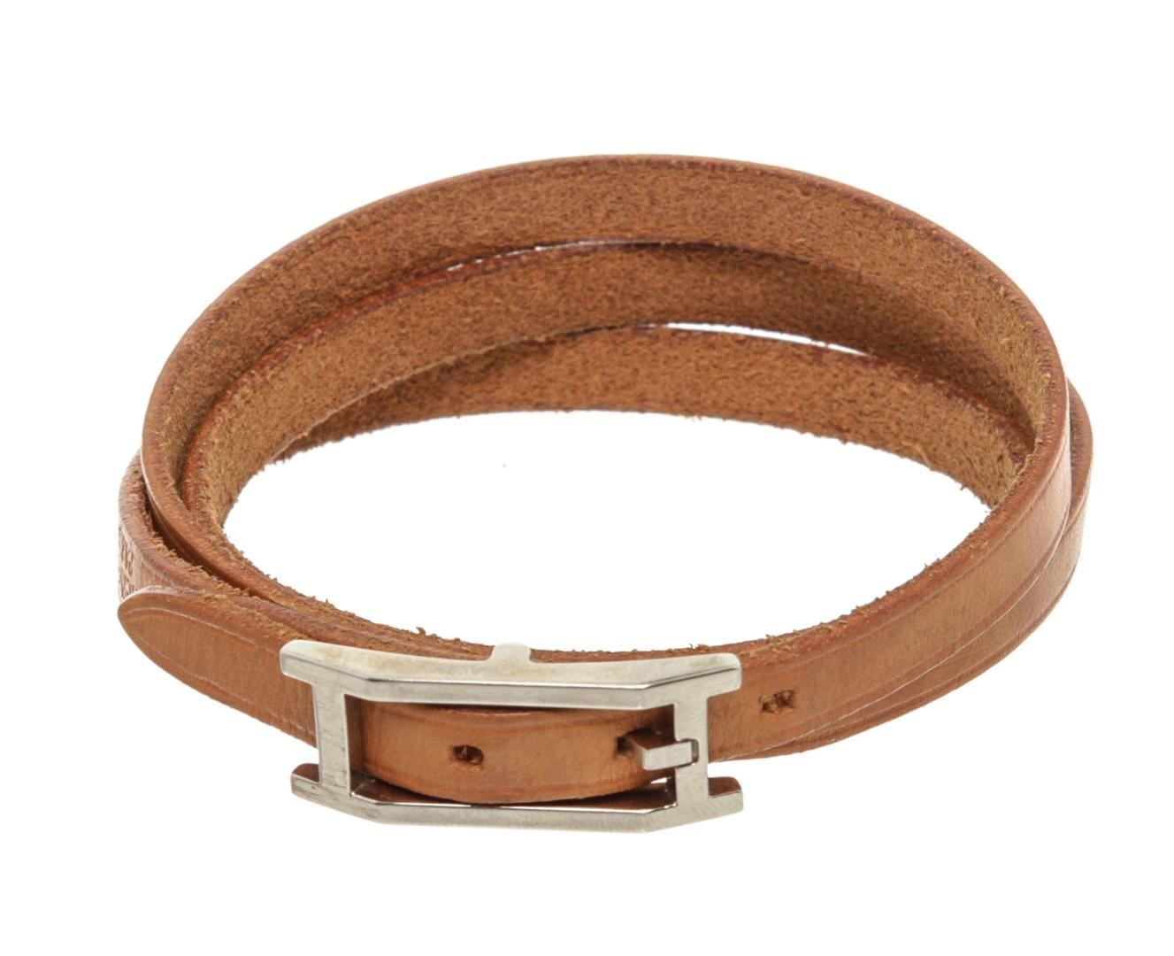 One Hermes Natural Vachetta Leather Hapi 3 Multi Tour Bracelet. Crafted out of natural tan vachetta leather and silver palladium plated hardware. MKX