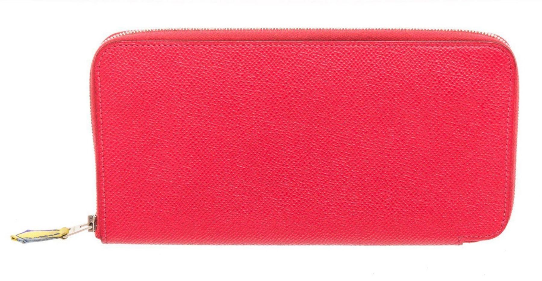 Hermes Red Epsom Leather Silkin Classic Wallet. Hermes Red Epsom Leather Silkin Classic Wallet with gold-tone hardware, silk lining with 'Panoplie Equestre' motif, three interior compartments; one with zip closure, dual bill compartments, twelve card slot